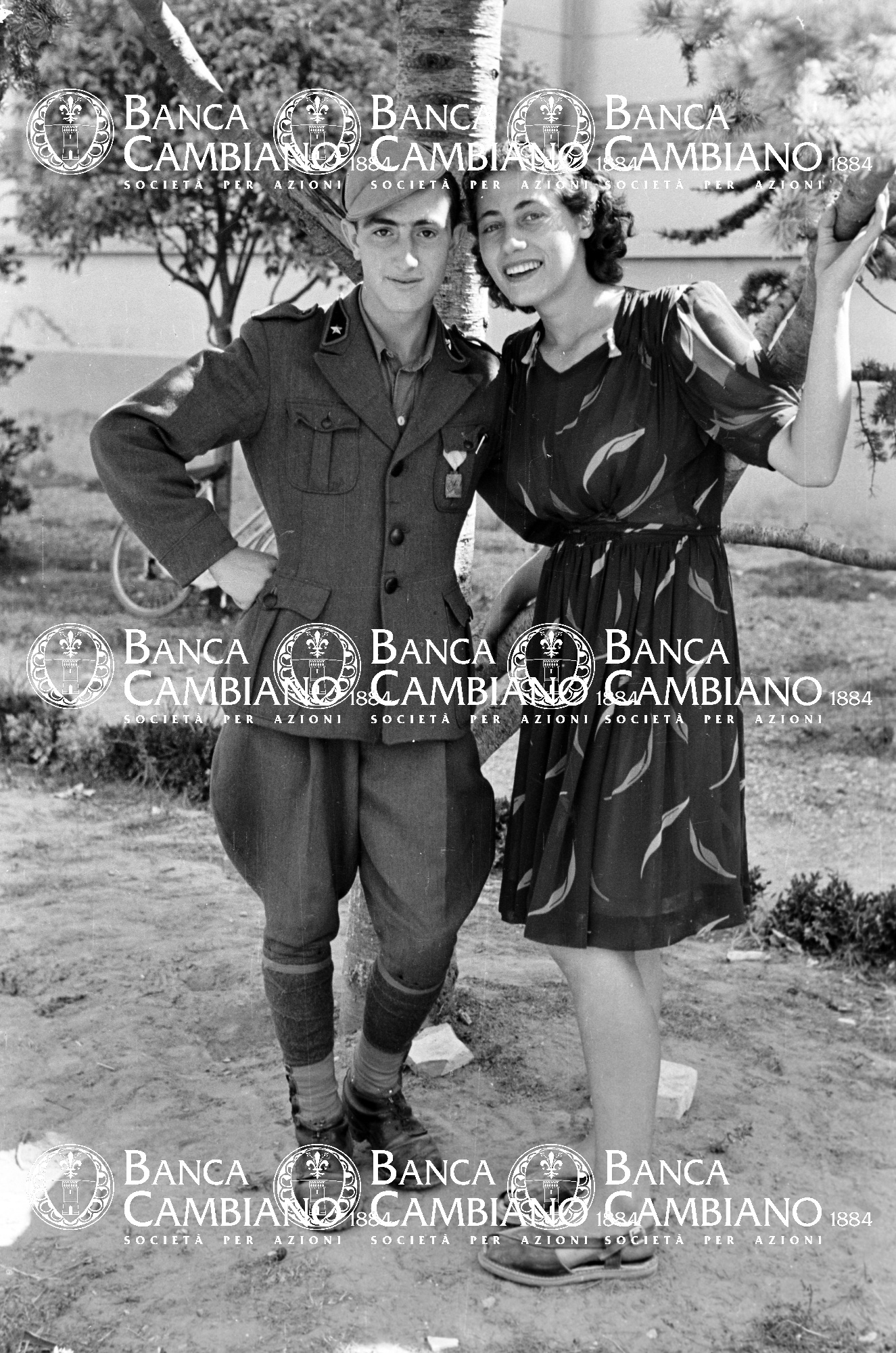 - Ritratto di ragazza con ragazzo in divisa ai giardini pubblici vicino la scuola elementare M.Tilli