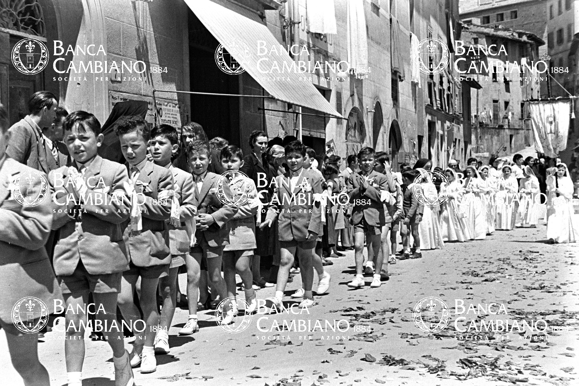 - comunioni, bambina, processione, bambino, corpus domini, vie, anni 50