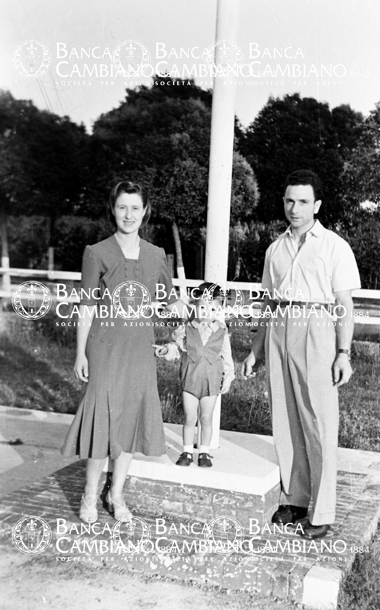 - Edificio del cimitero americano: ritratto di donna e uomo con bambino