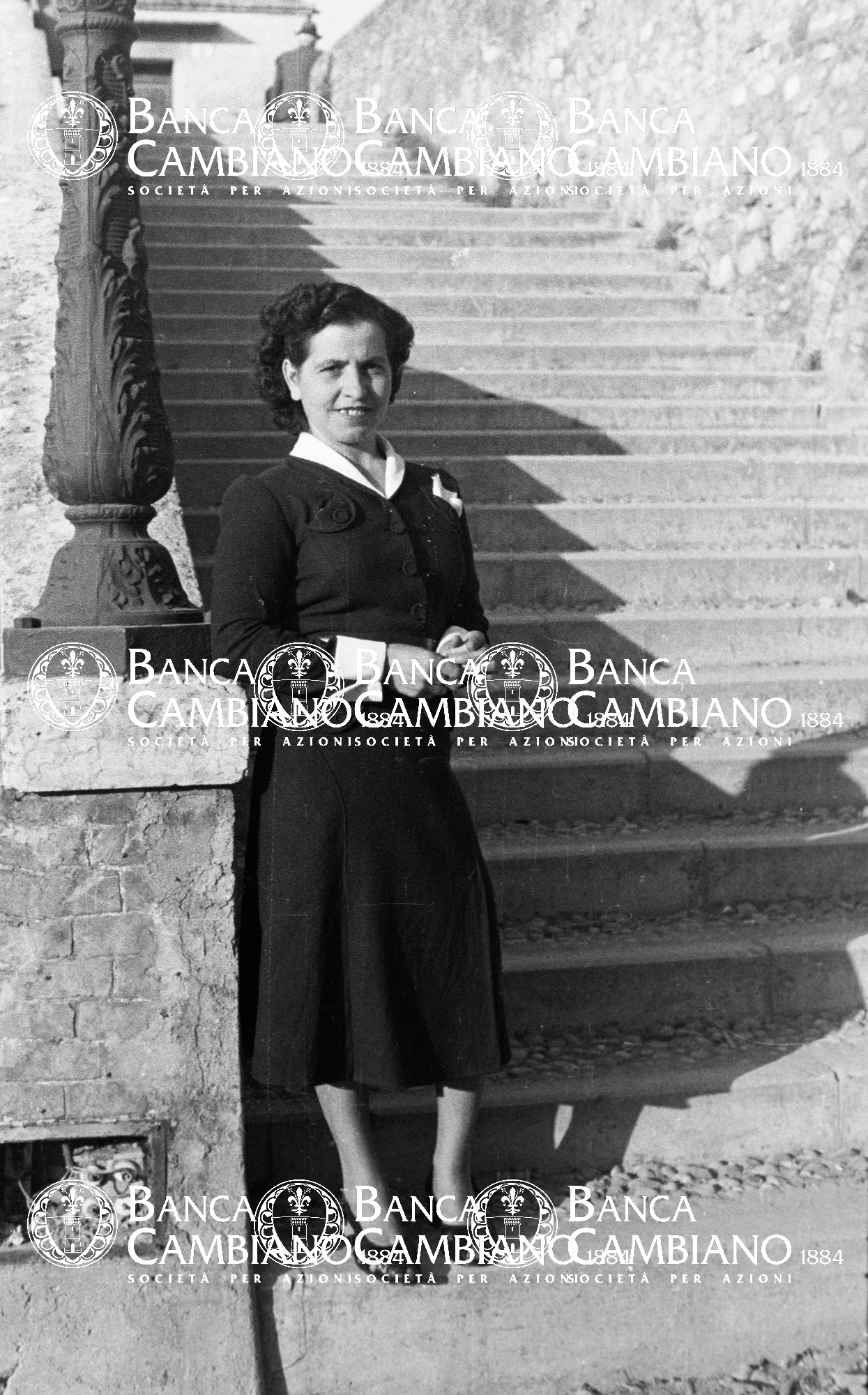 ritratto di donna vicino alle scalette in piazza Gramsci