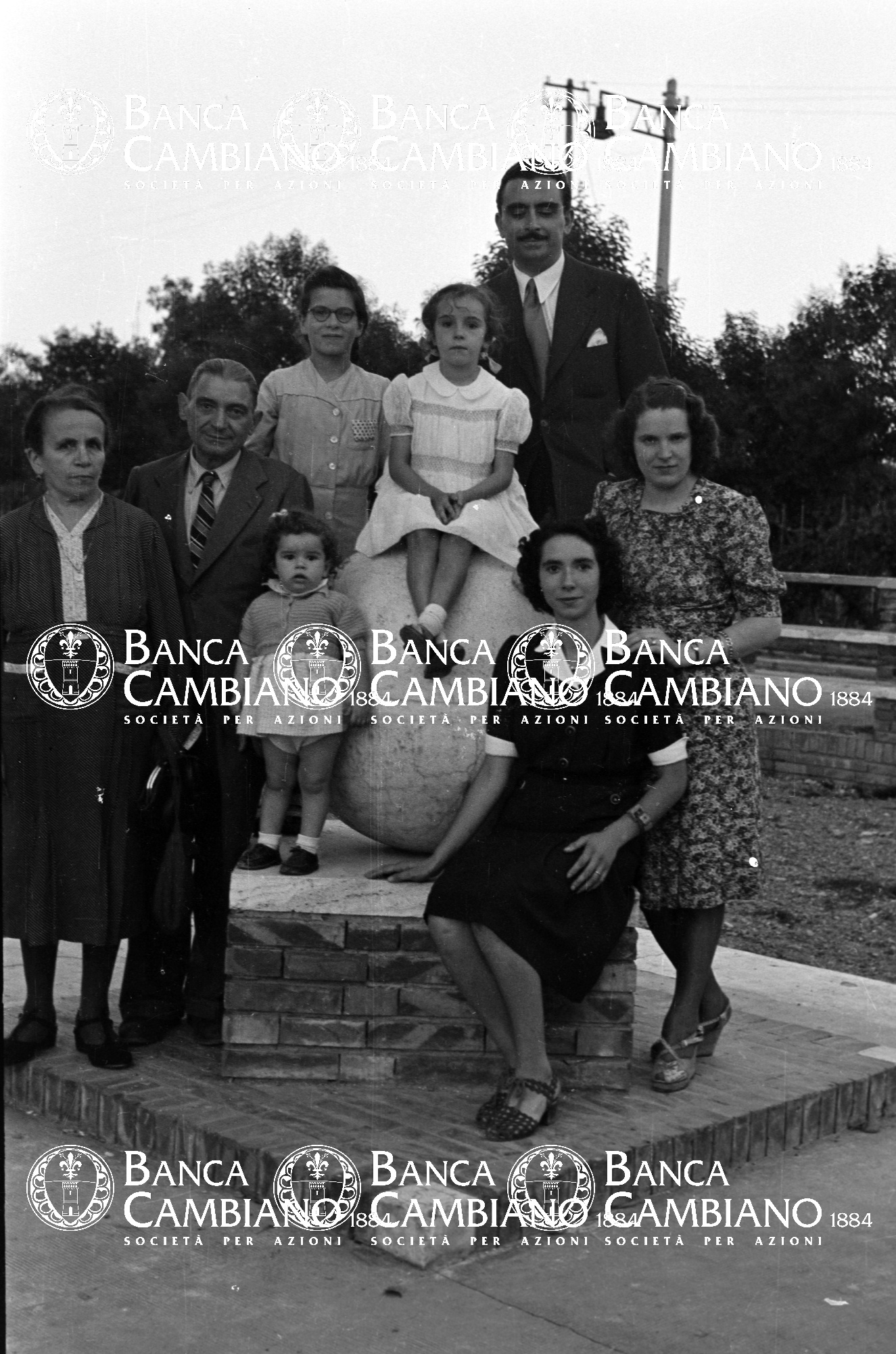 Ritratto di gruppo vicino all'edificio della G.I.L.