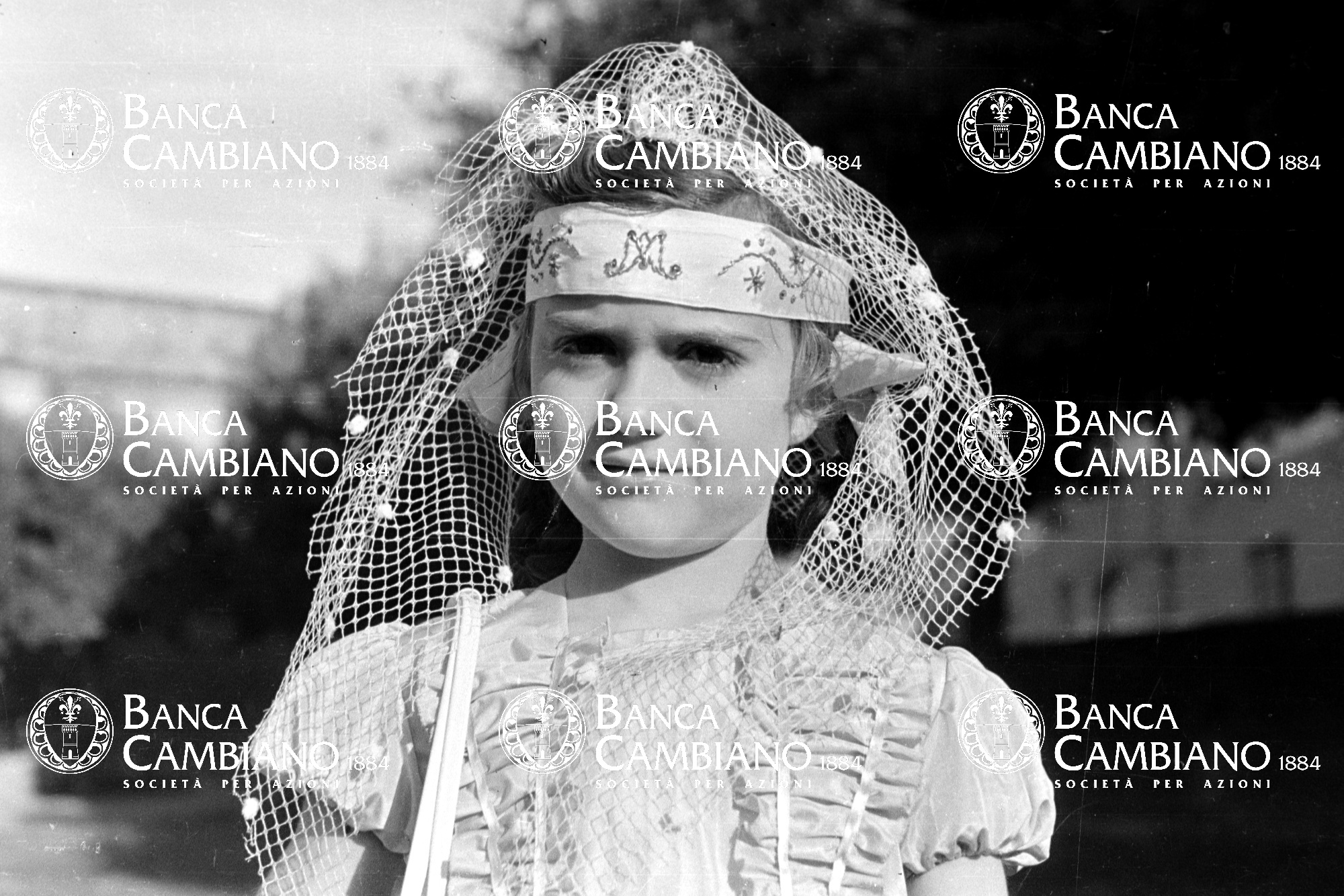 - Ritratto di bambina vestita da cresima nei giardini pubblici vicino alla scuola elementare M.Tilli