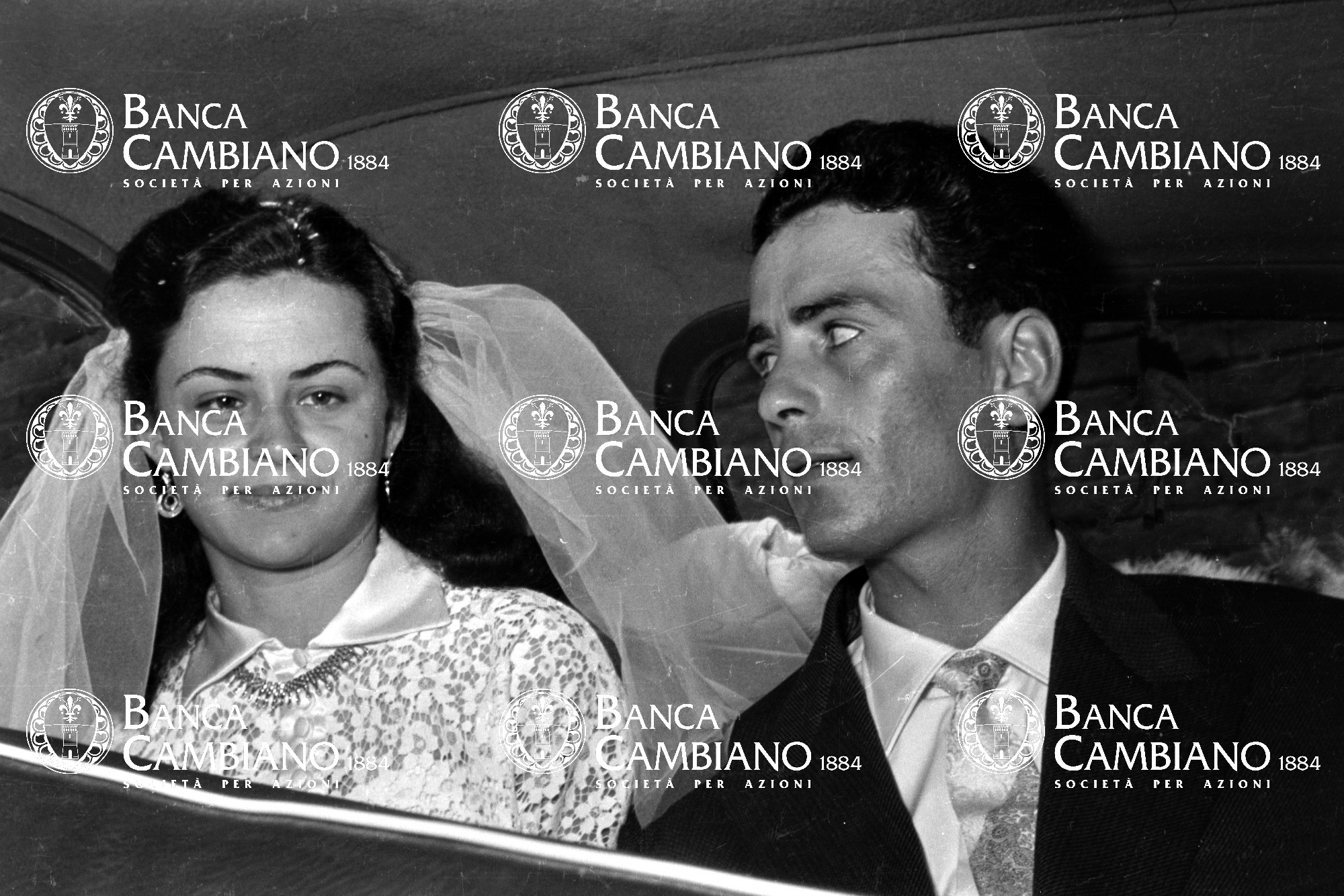 - sposi, moda, matrimonio, donna, automobile, anni 50, uomo
