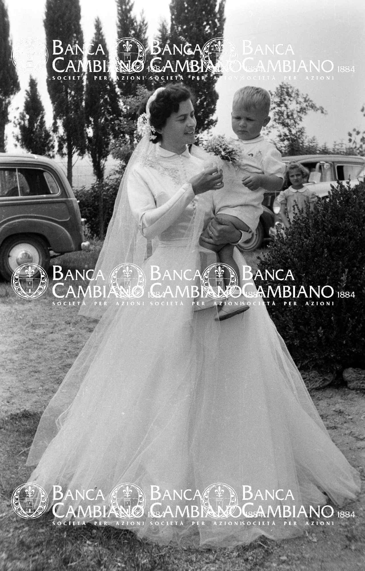 sposi, bambino, moda, matrimonio, donna, anni 50