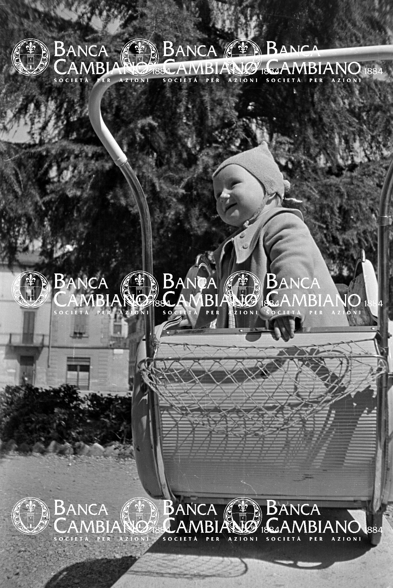- ritratto di bambino nel passeggino nei giardini pubblici vicino a piazza Kennedy