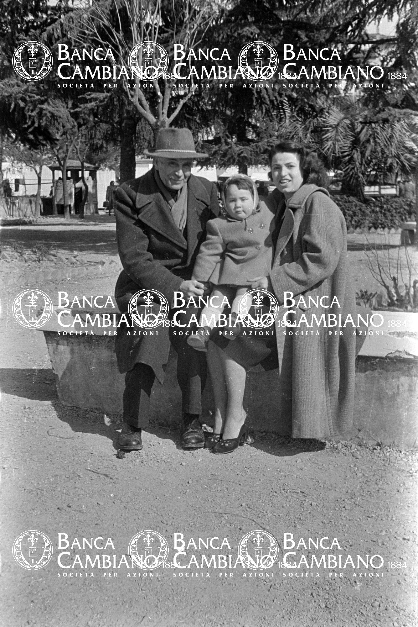 - ritratto di donna, uomo e bambino nei giardini pubblici vicino alla scuola elementare M.Tilli