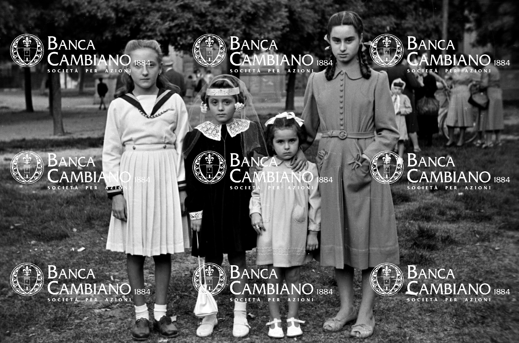 Cresime: ritratto di bambine nei giardini pubblici vicino alla scuola elementare M.Tilli
