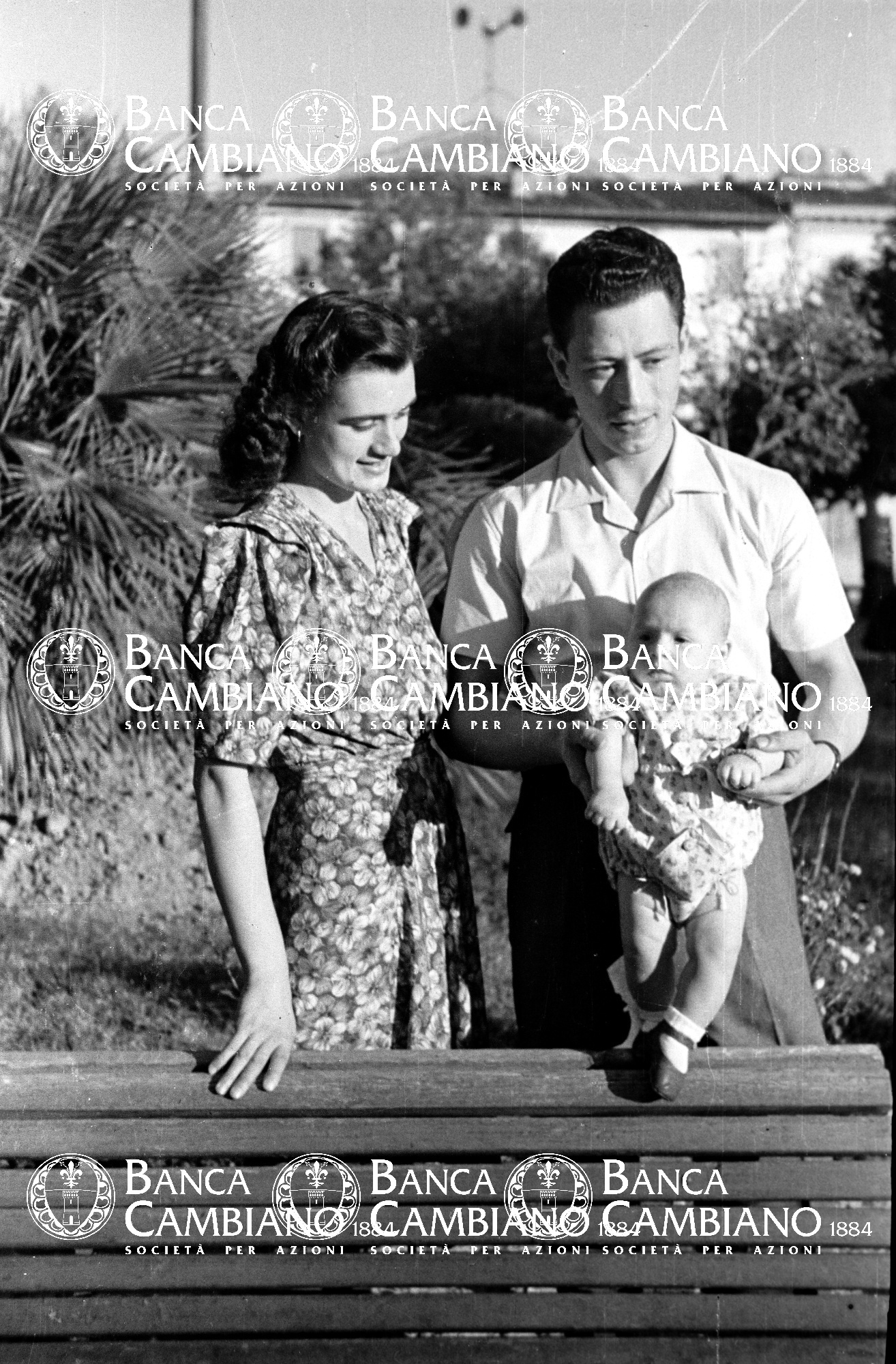 ritratto di uomo e donna con bambino in piazza Gramsci