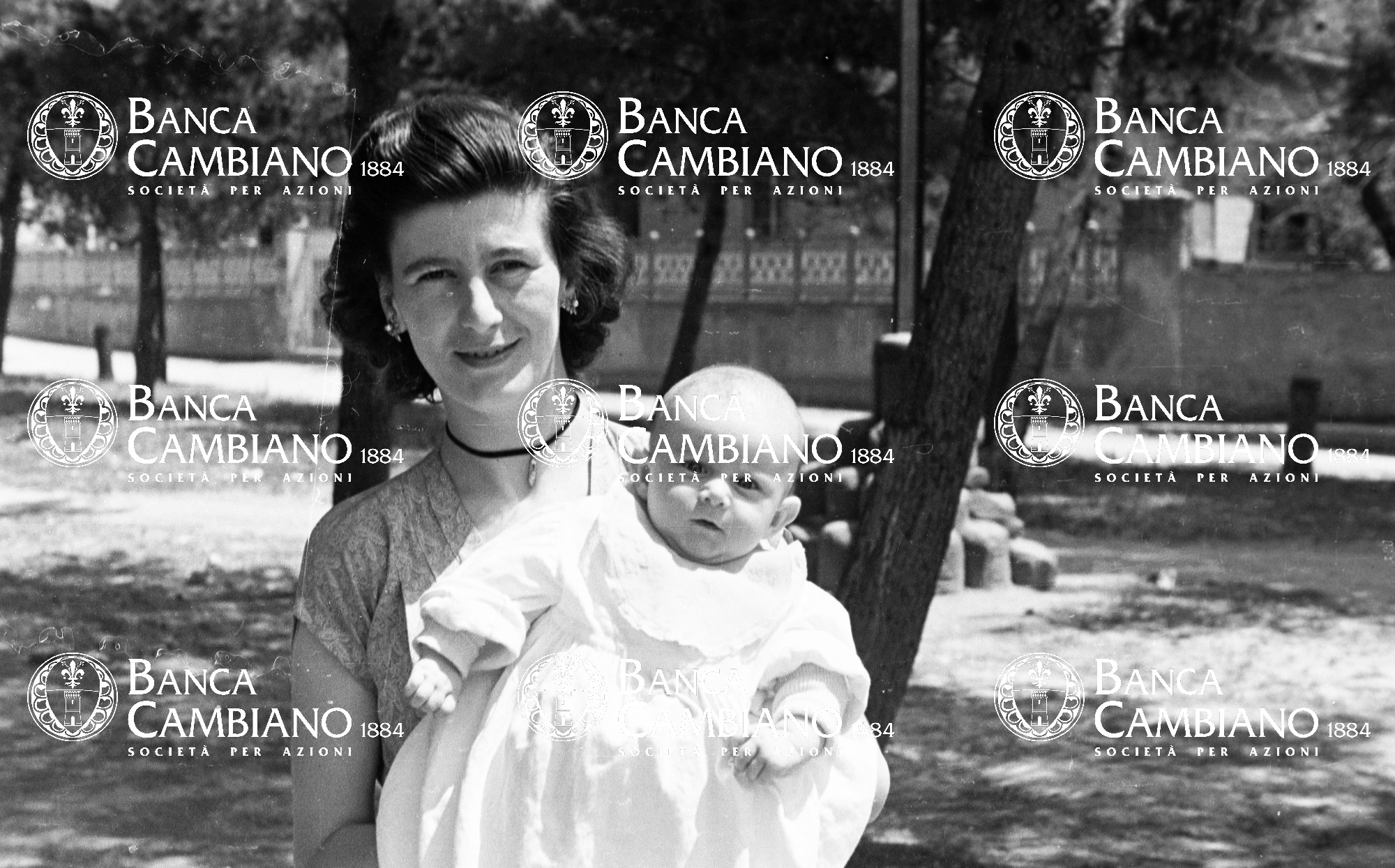 - ritratto di donna con bambino nei giardini pubblici vicino alla scuola elementare M.Tilli