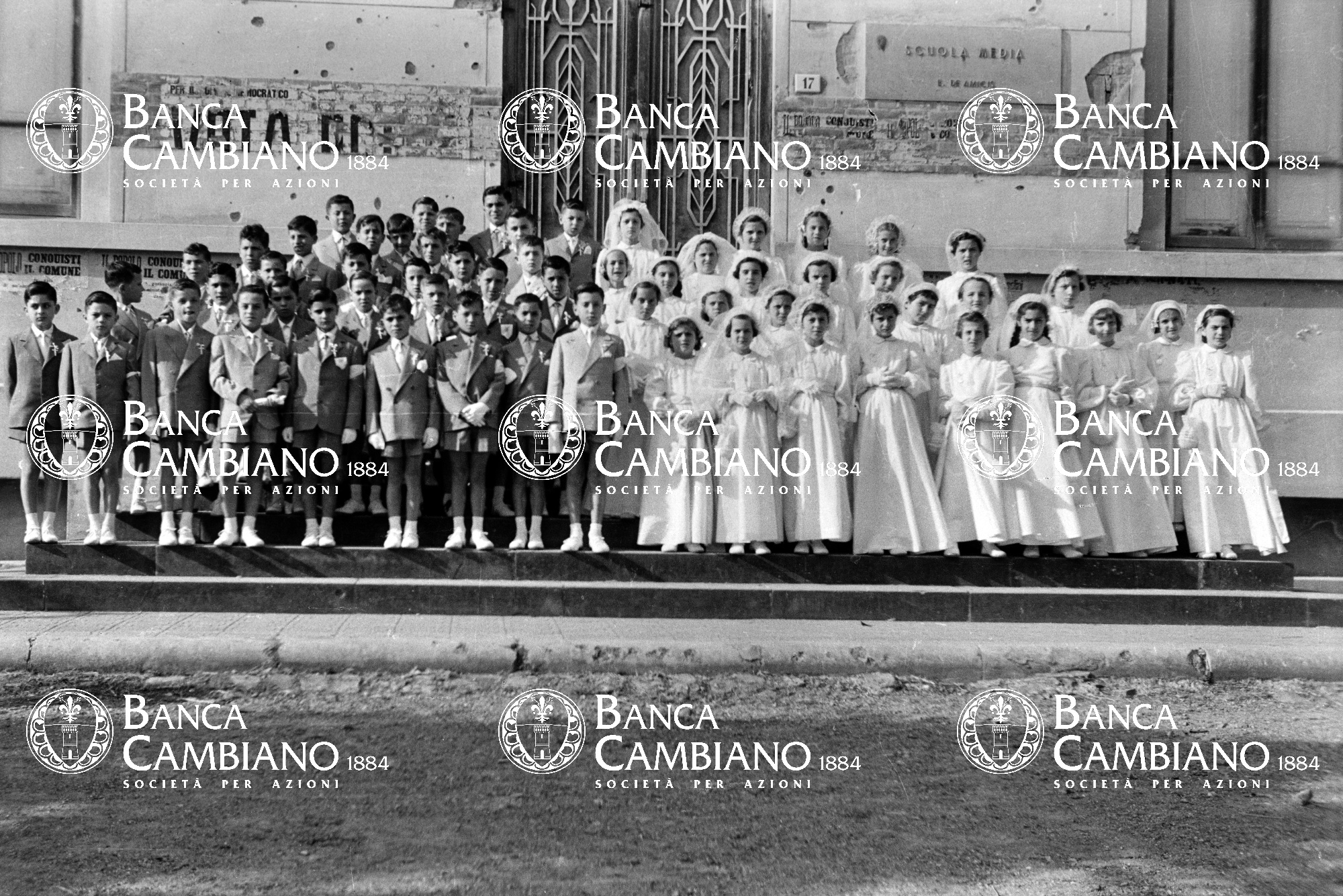 comunioni: ritratto di gruppo di bambini
