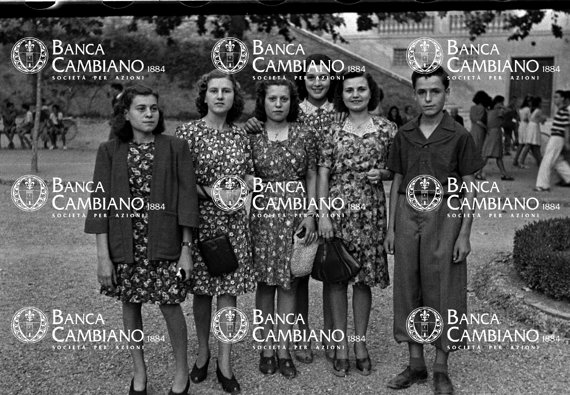 ritratto di gruppo ai giardini pubblici in piazza Gramsci giĆ  piazza marconi