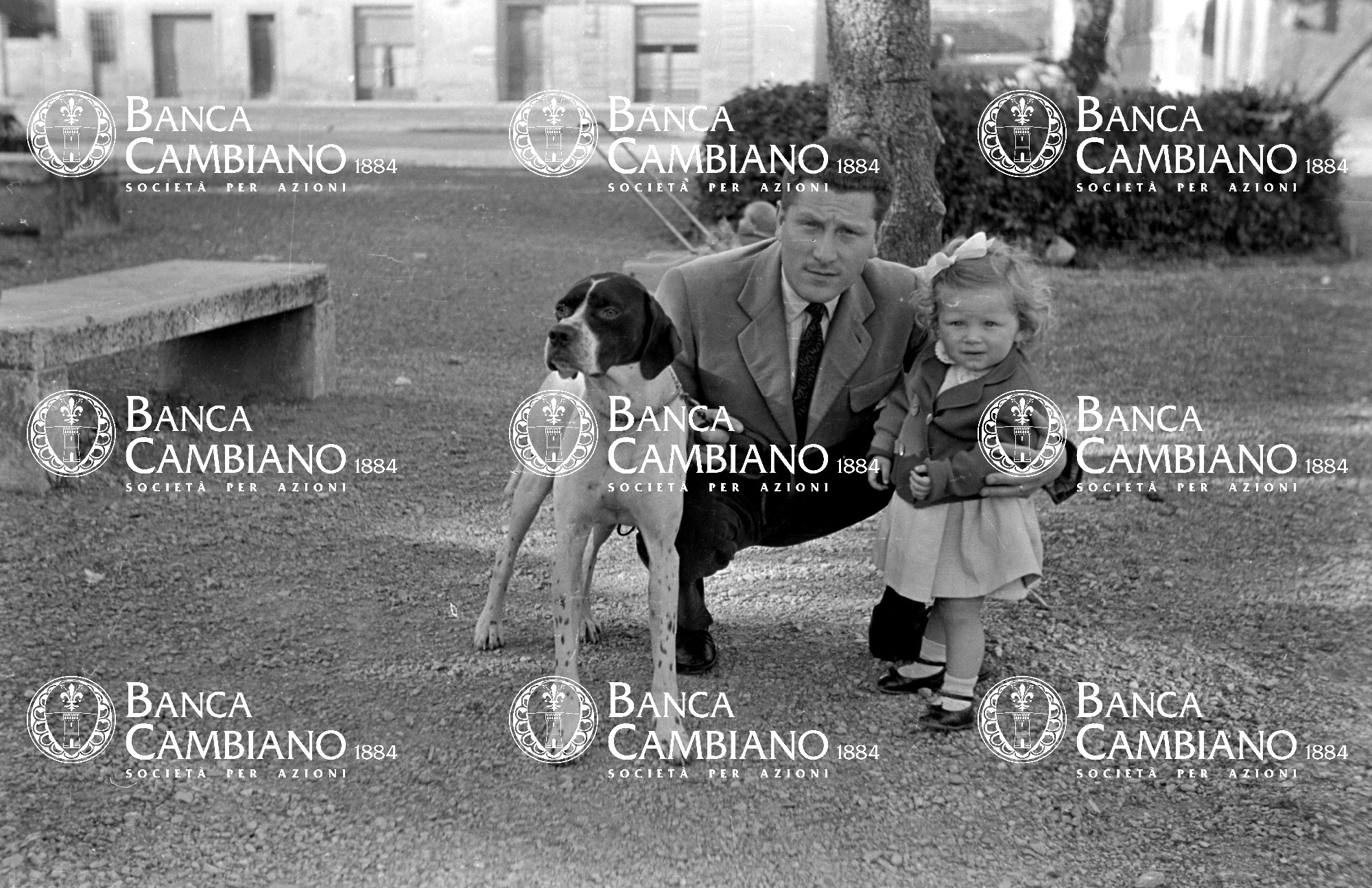 ritratto di uomo (Mario Bianchi) con la figlia Vittoria e cane