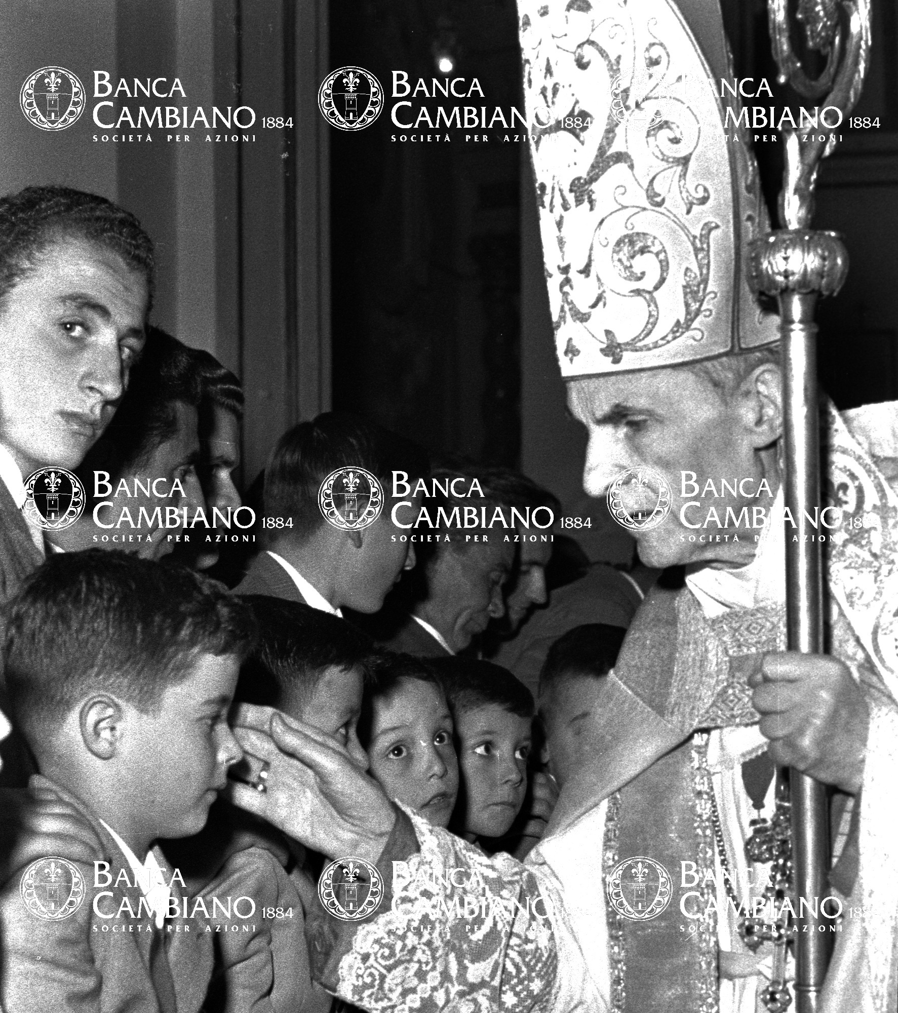 - cresime, bambina, autorità religiosa, vescovo, anni 50