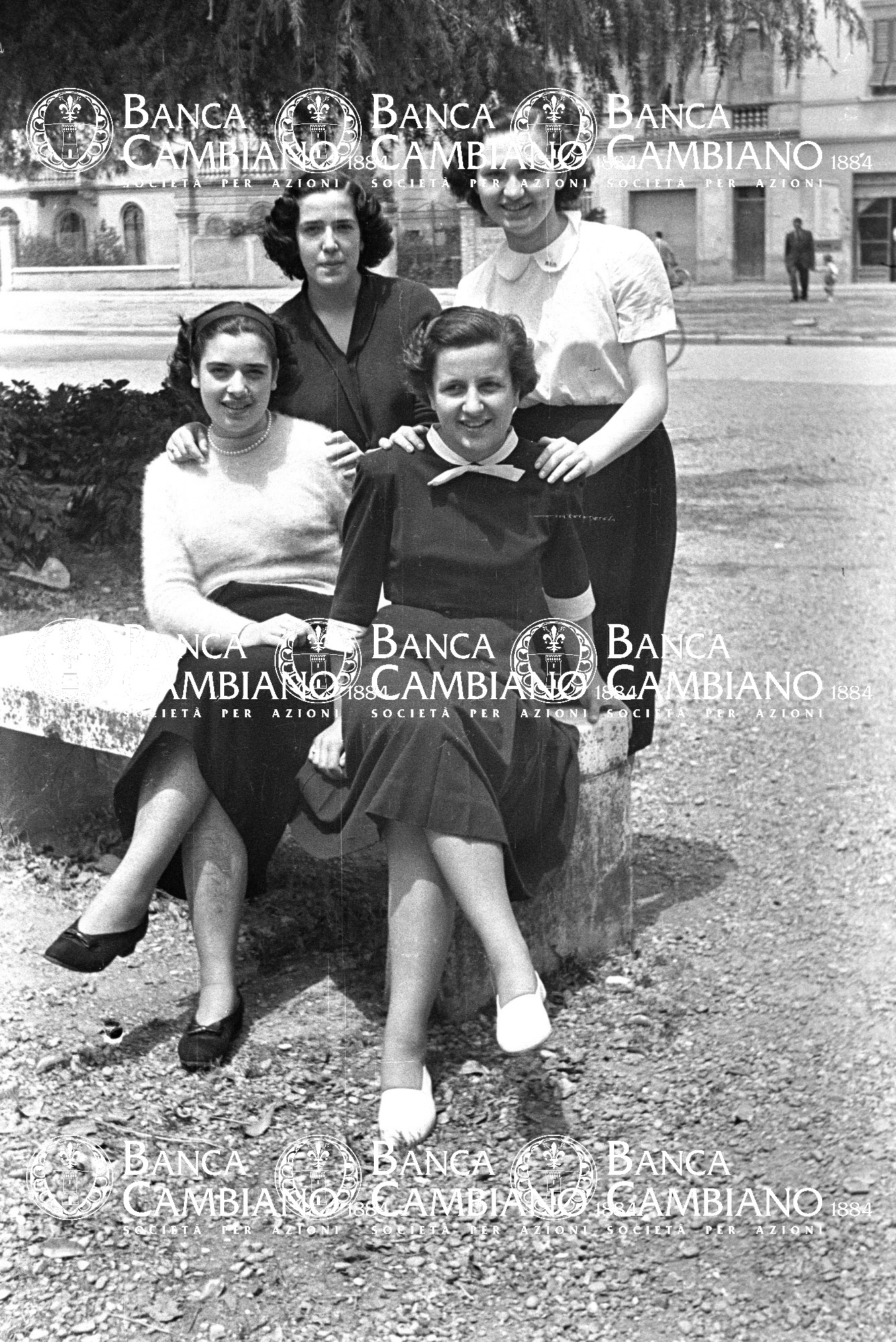 - ritratto di donne nei giardini pubblici vivino alla scuola elementare M.Tilli. Alle spalle, piazza Marconi oggi piazza kennedy