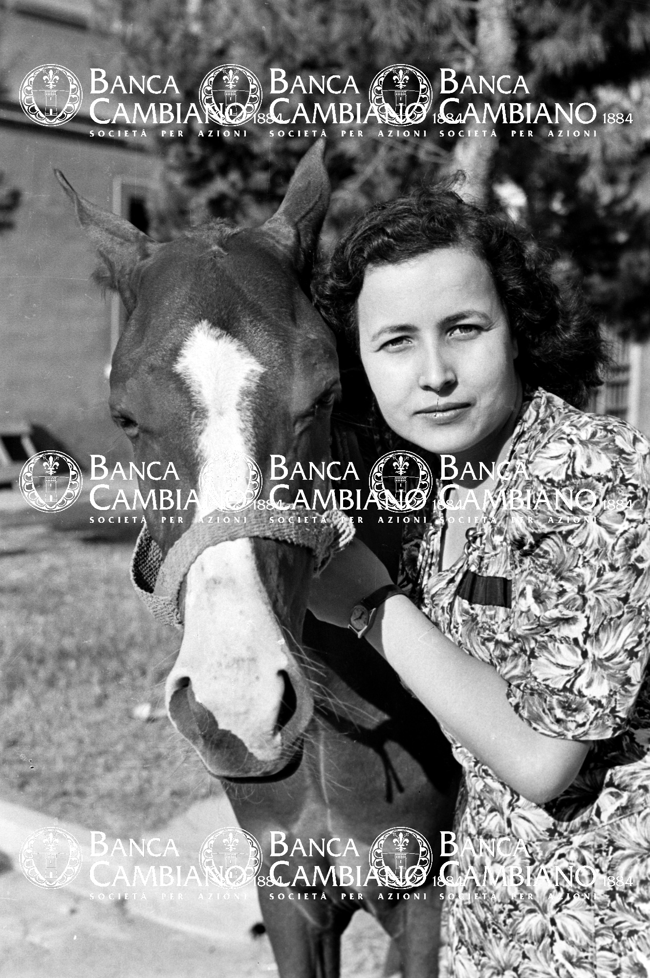 - ritratto di donna con cavallo ai giardini pubblici vicino alla scuola elementare M. Tilli