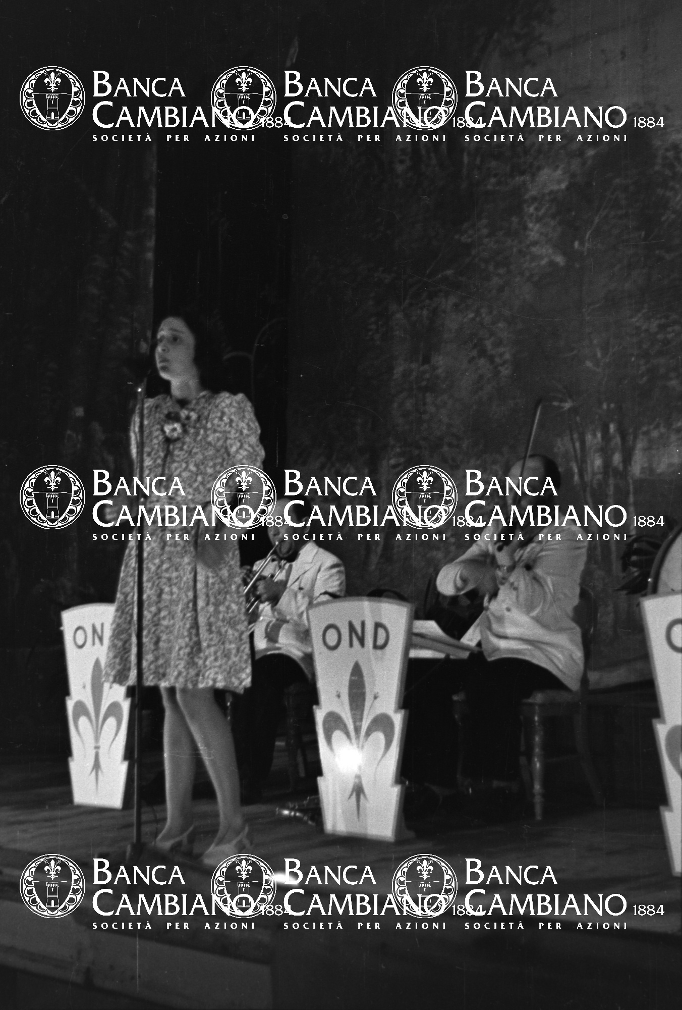 - Ragazza con orchestra allo spettacolo presso Teatro del popolo (giĆ a casa del fascio) organizzato dalla OND (Organizzazione nazionale del Dopolavoro)