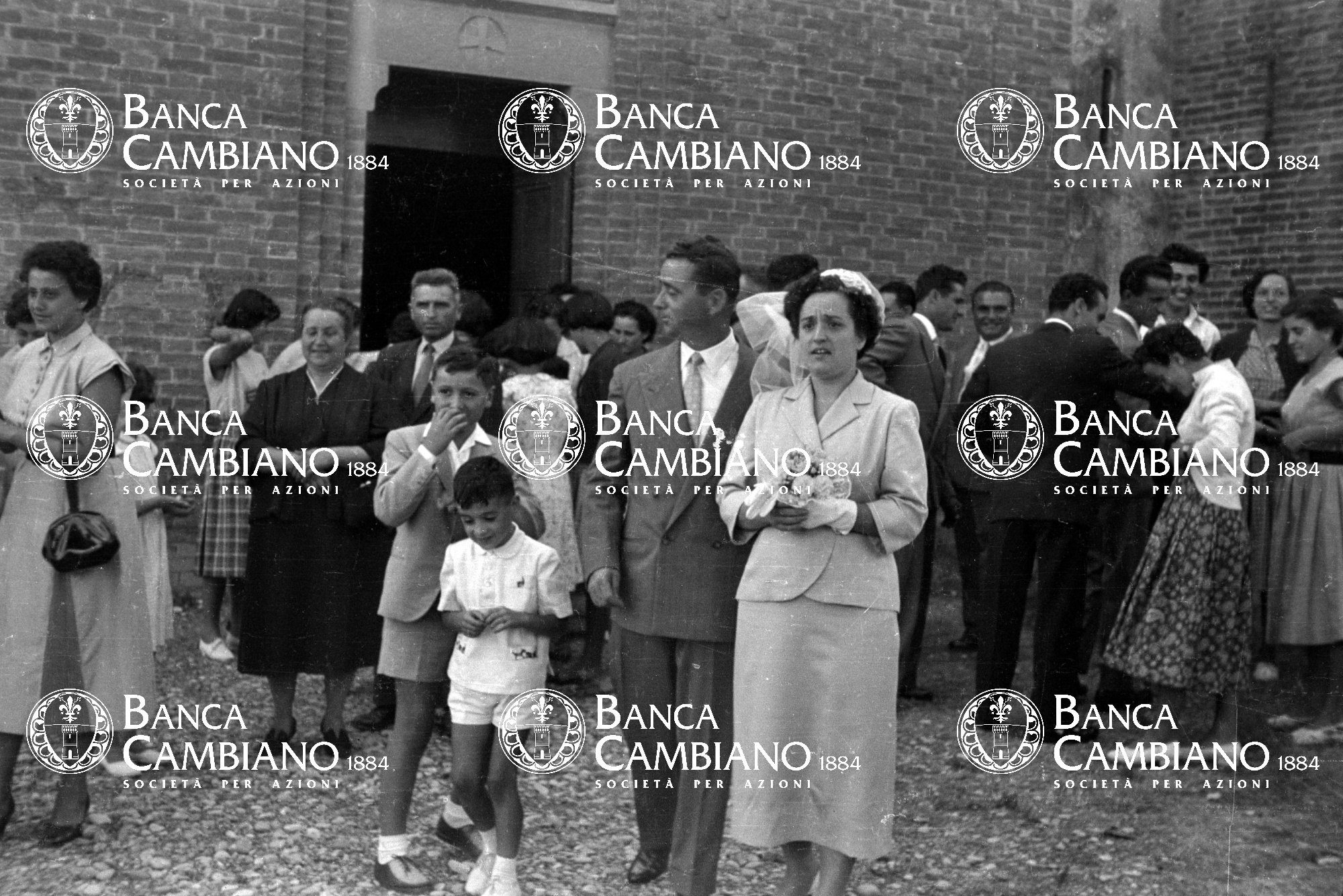 - matrimonio: gli sposi e gli invitati fuori di chiesa