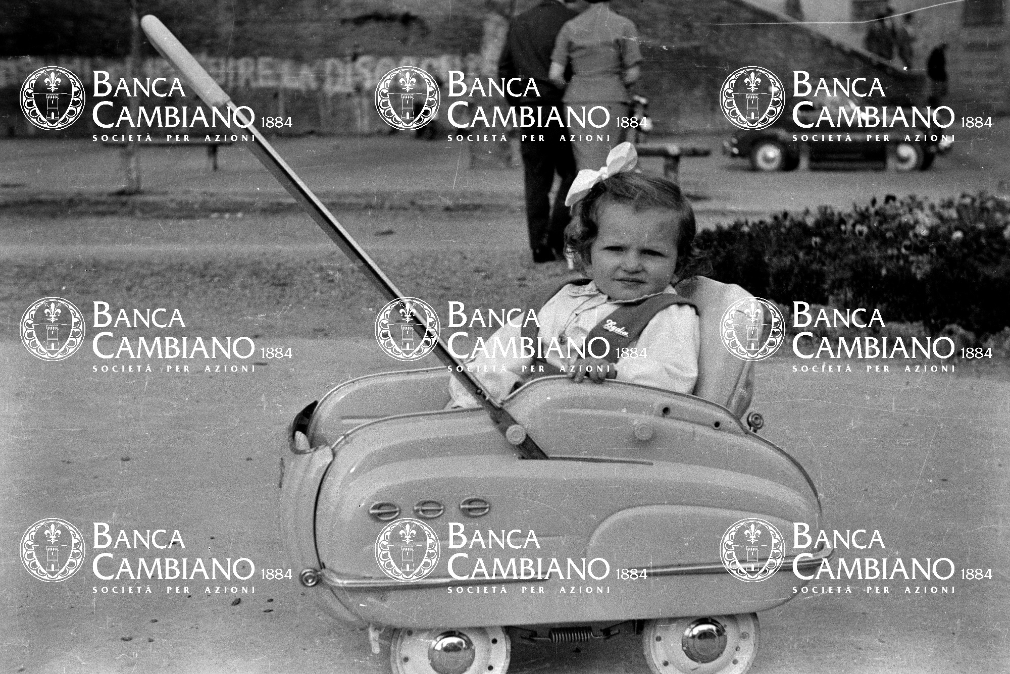 - ritratto di bambina in passeggino in piazza gramsci