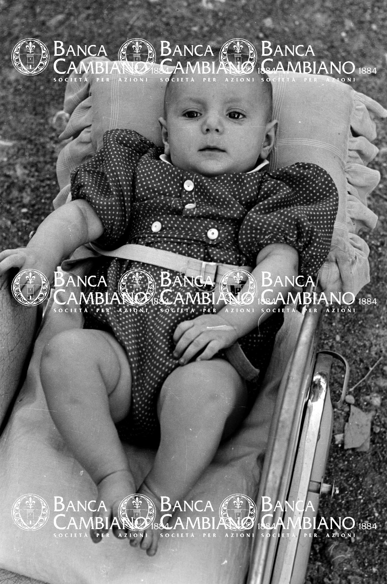 Ritratto di bambino in passeggino ai giardini pubblici vicino la scuola elementare M.Tilli