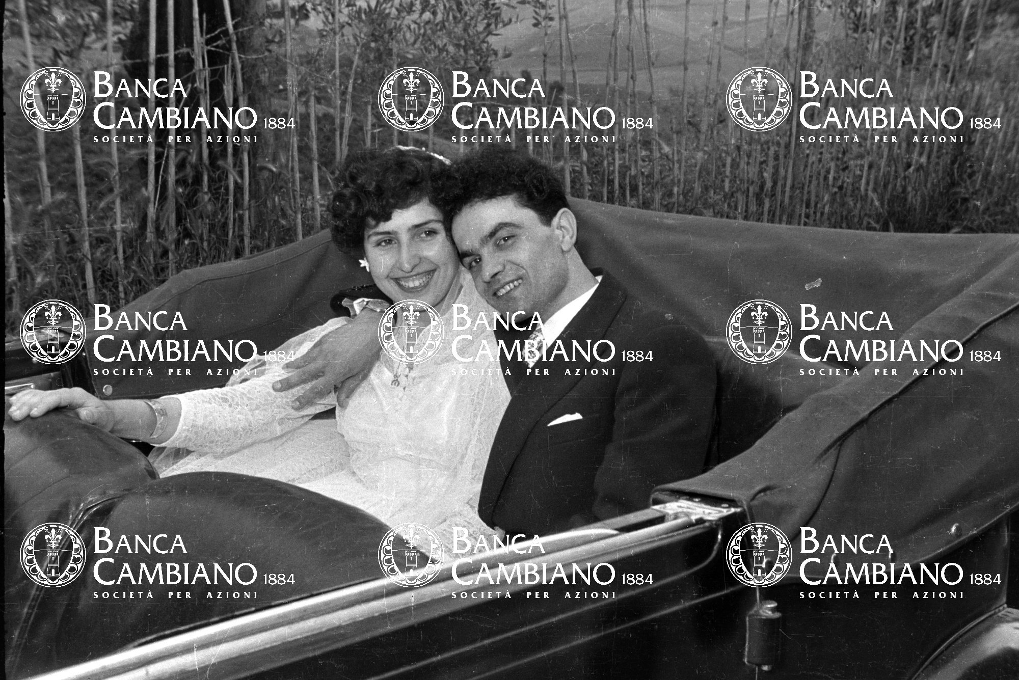 - sposi, matrimonio, donna, automobile, anni 50, uomo