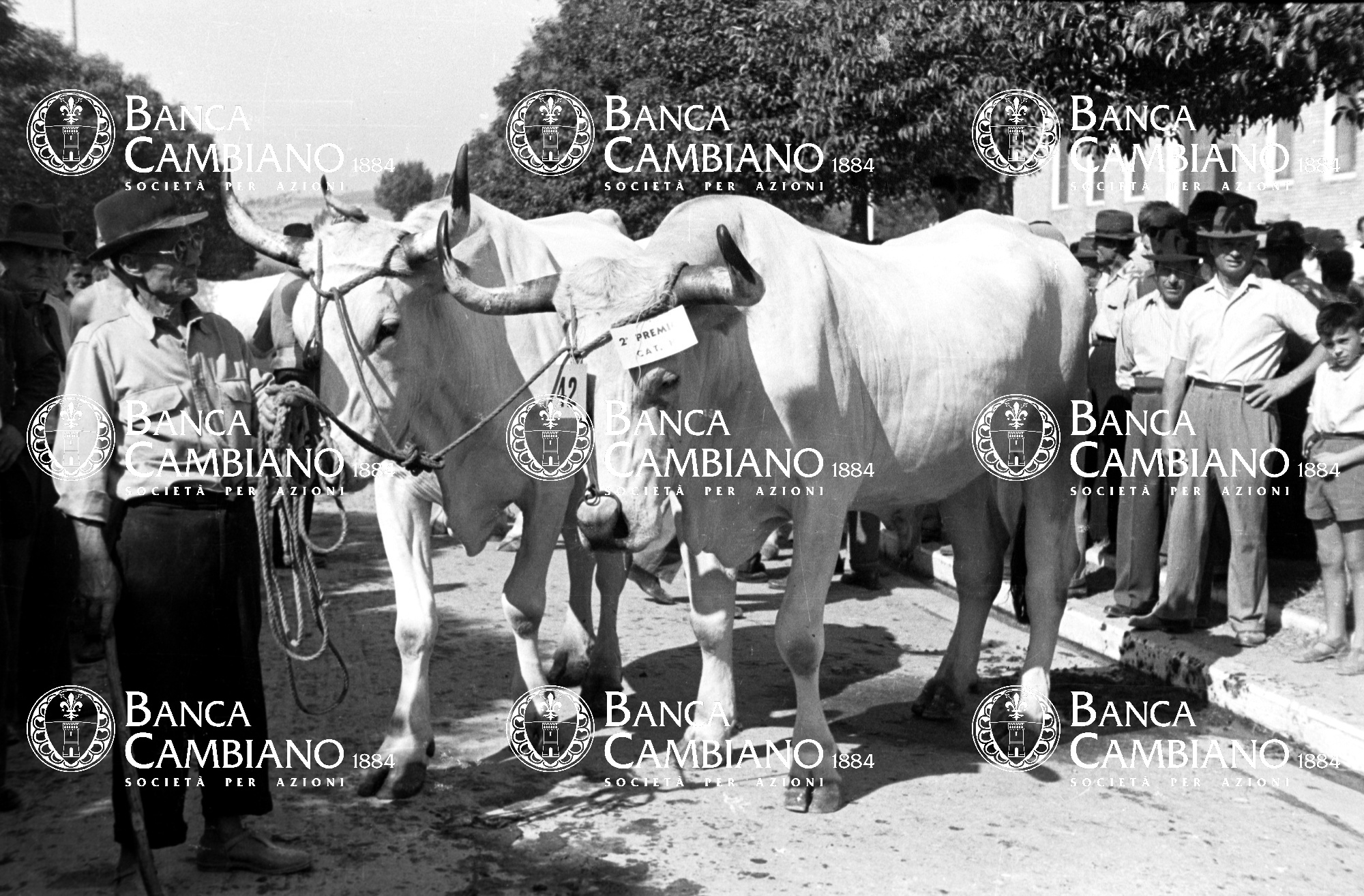 Concorso zootecnico: ritratto di uomini con bovi in viale roosvelt