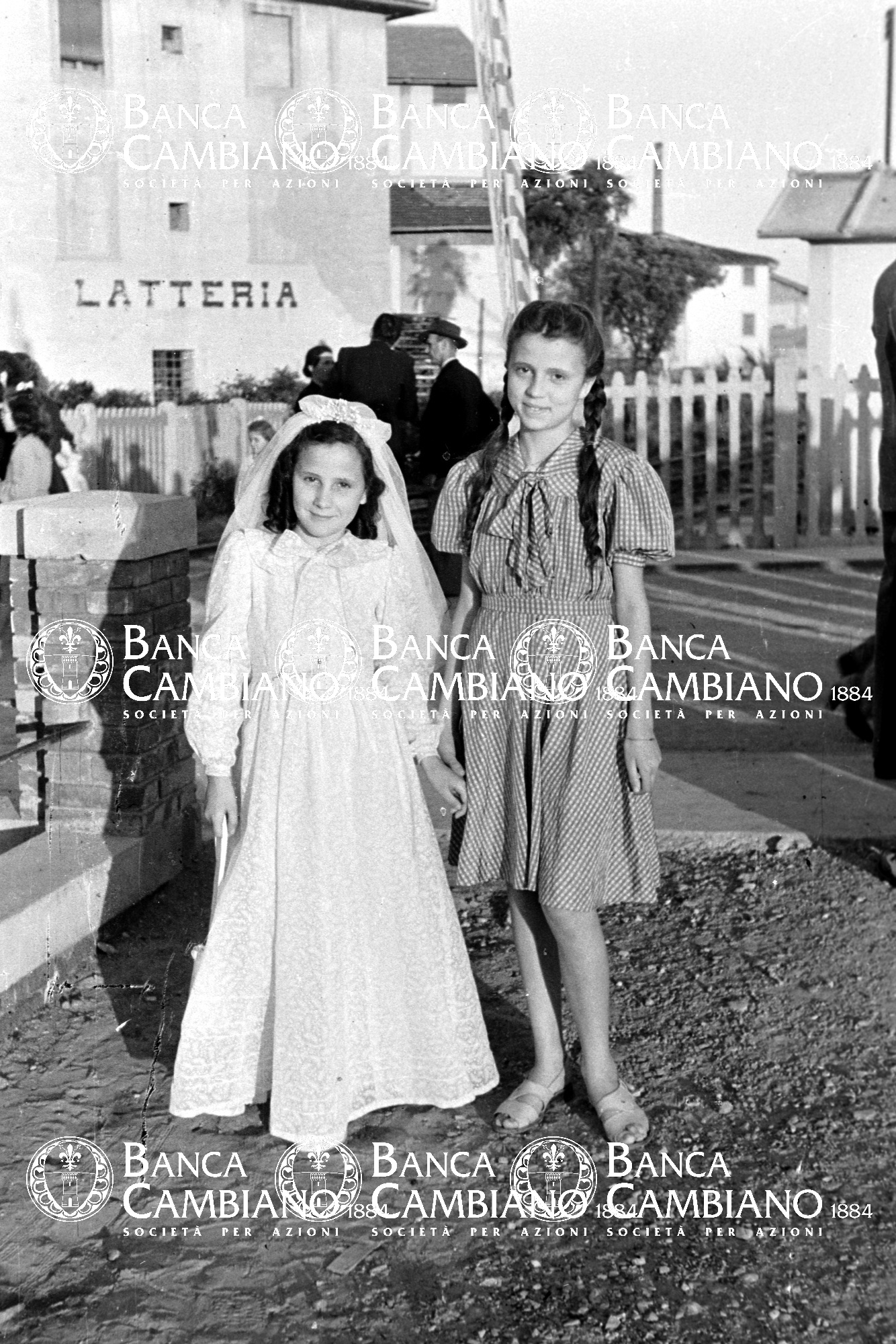 Ritratto di bambine di cui una vestita da comunione