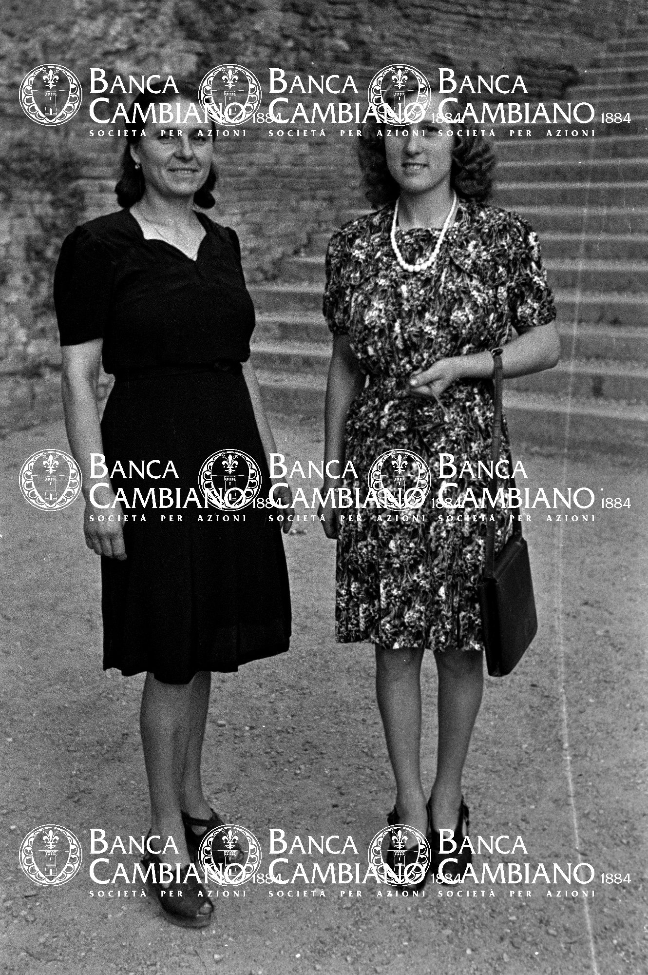 - ritratto di ragazze vicino alle scalinate della mura vicino ai giardini pubblici in piazza Gramsci giĆ piazza marconi