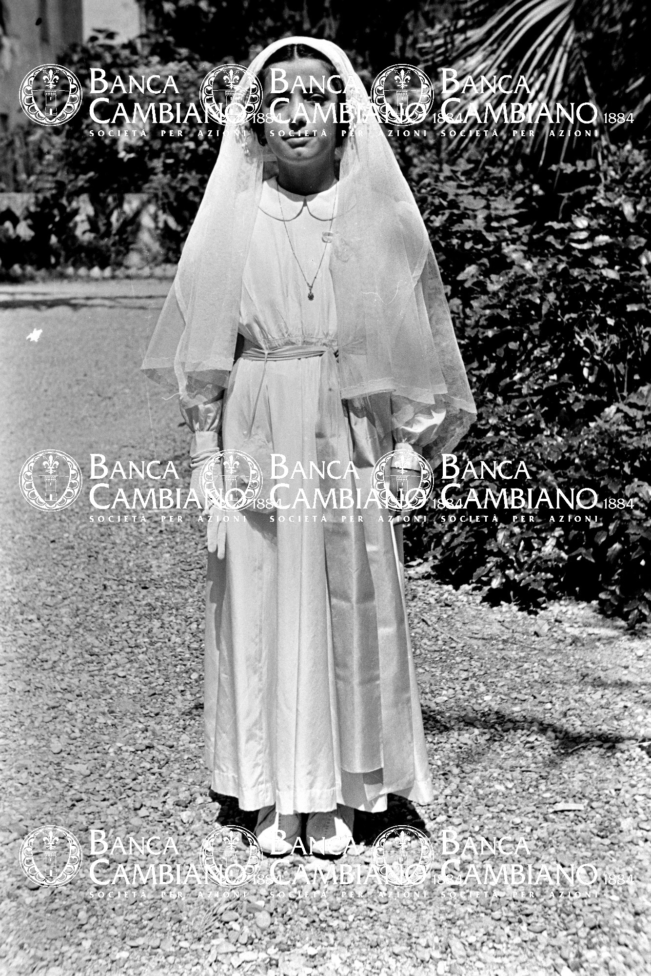- comunioni: ritratto di bambina nei giardini pubblici vicino alla scuola elementare M. tilli
