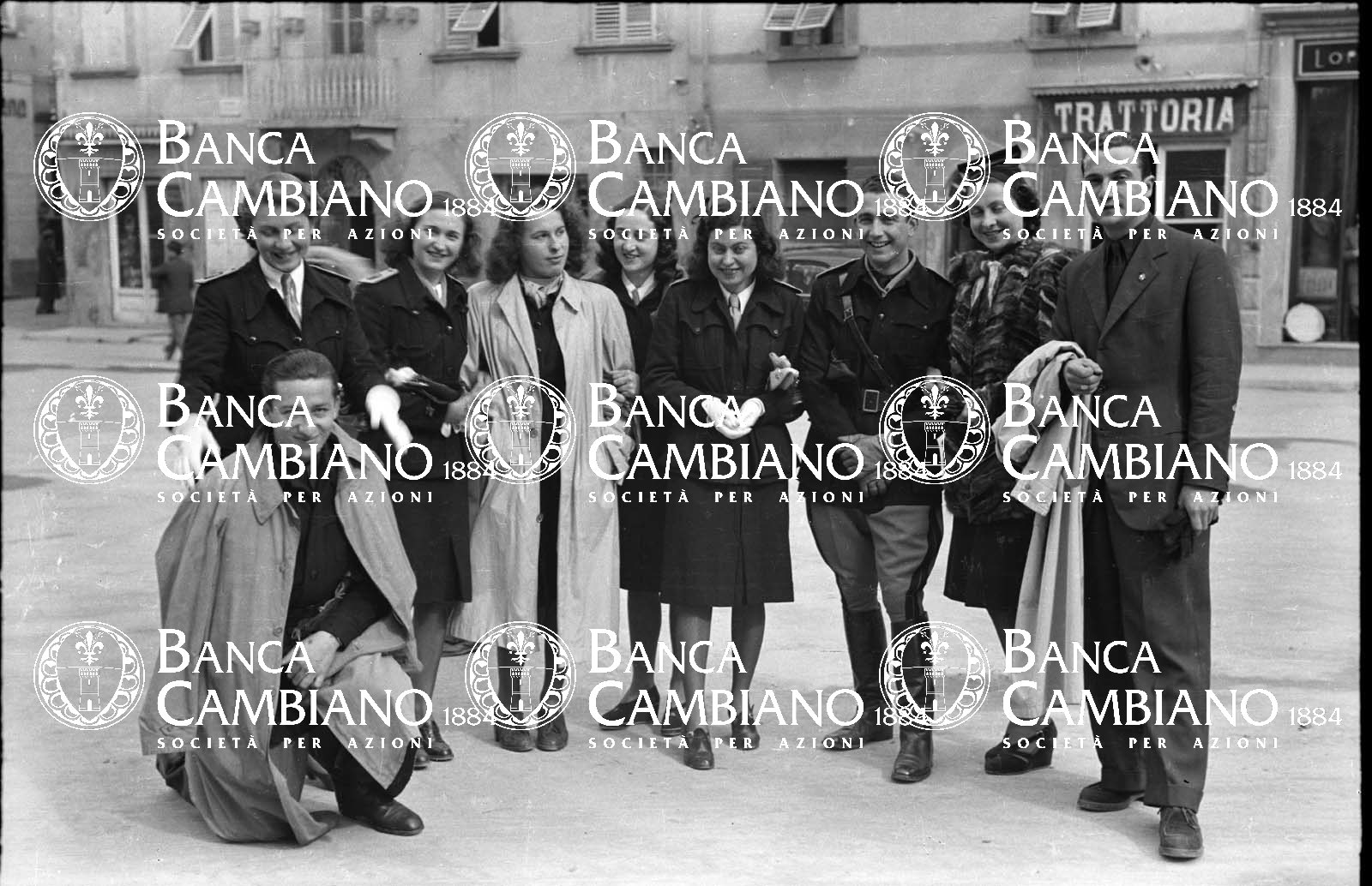 Gruppo di giovani donne e giovani uomini universitari fascisti