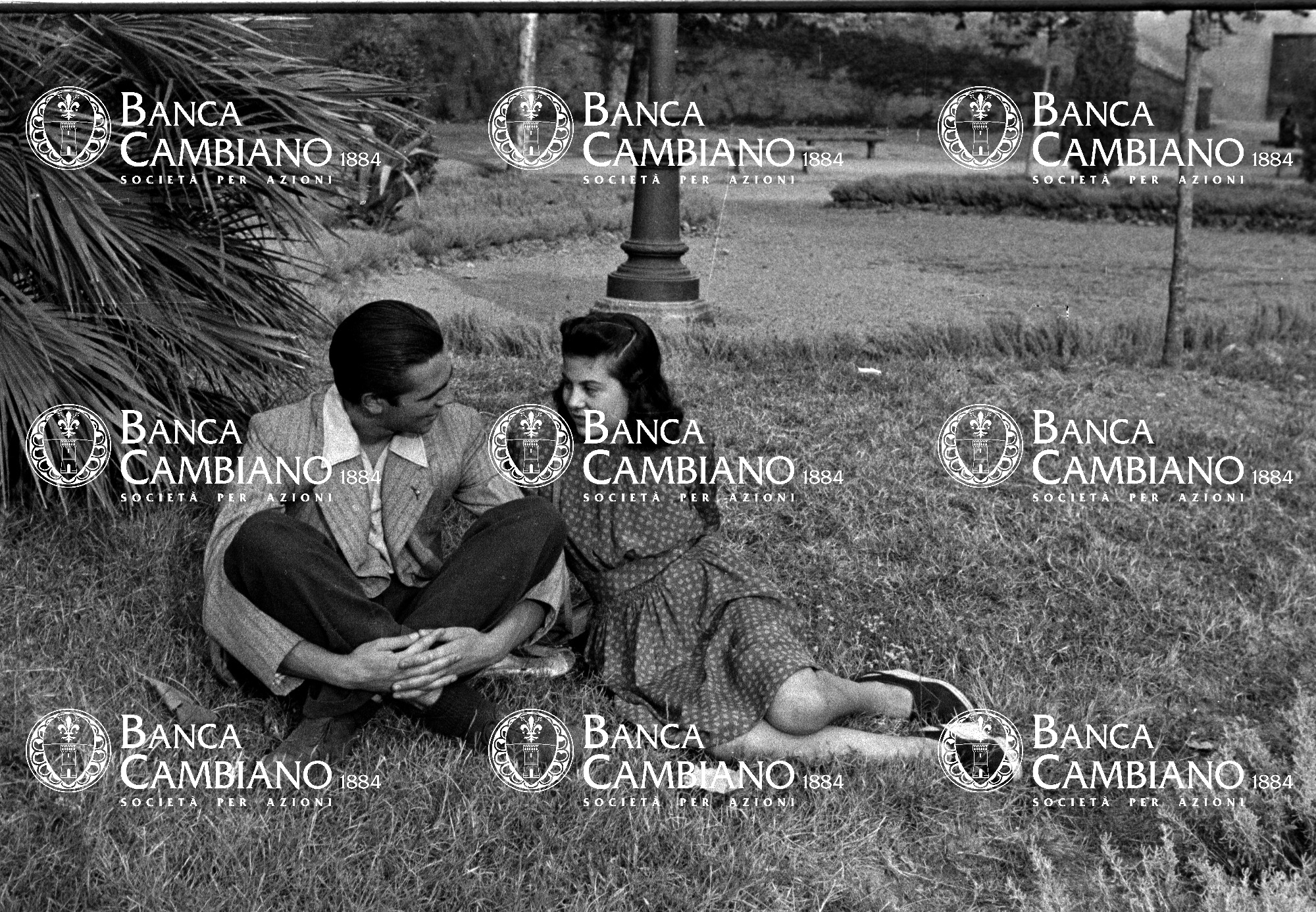 ritratto di uomo con donna ai giardini pubblici in piazza Gramsci giĆ  piazza marconi