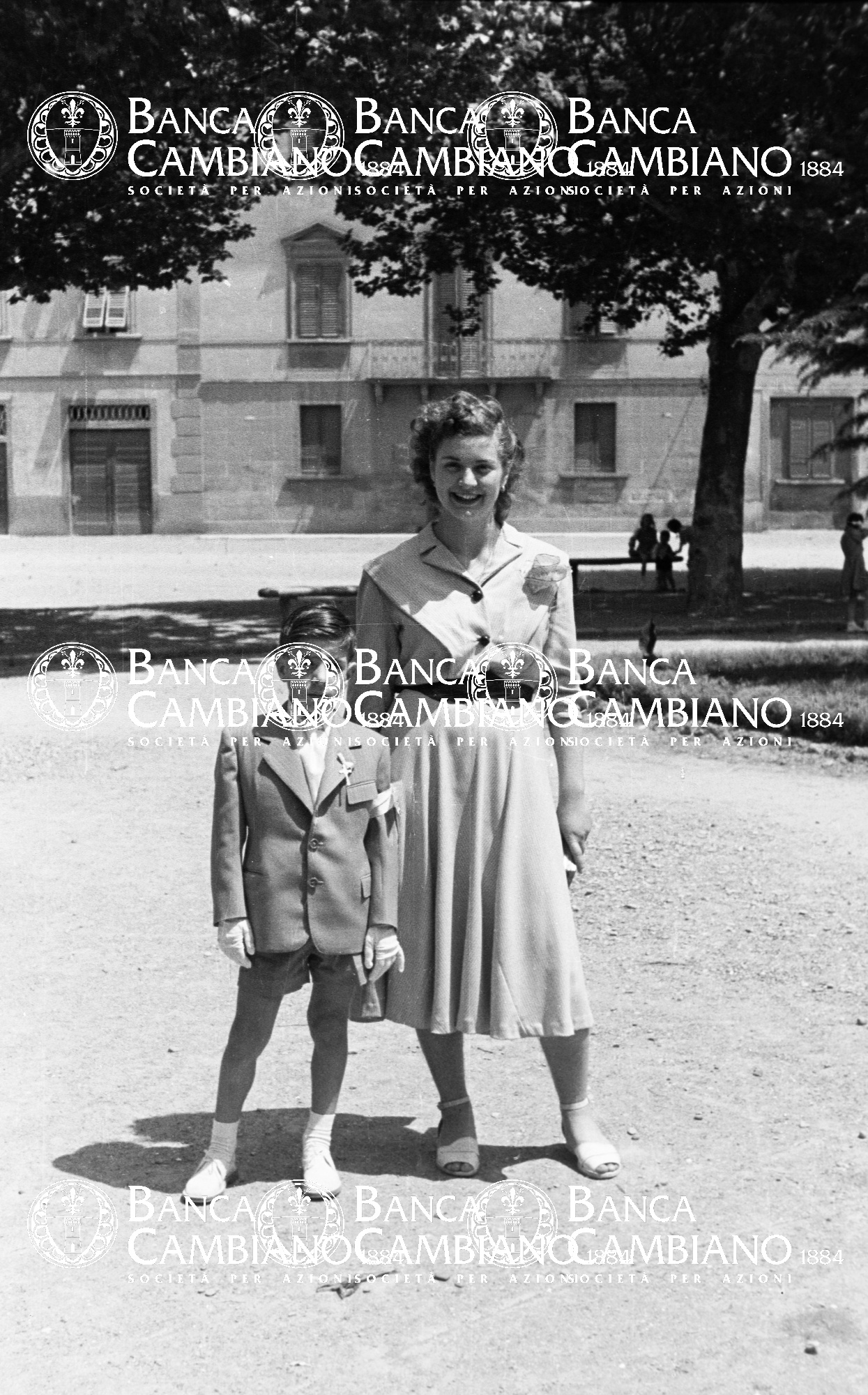 - Comunioni: ritratto di donna con bambino nei giardini pubblici vicino alla scuola elementare M.Tilli
