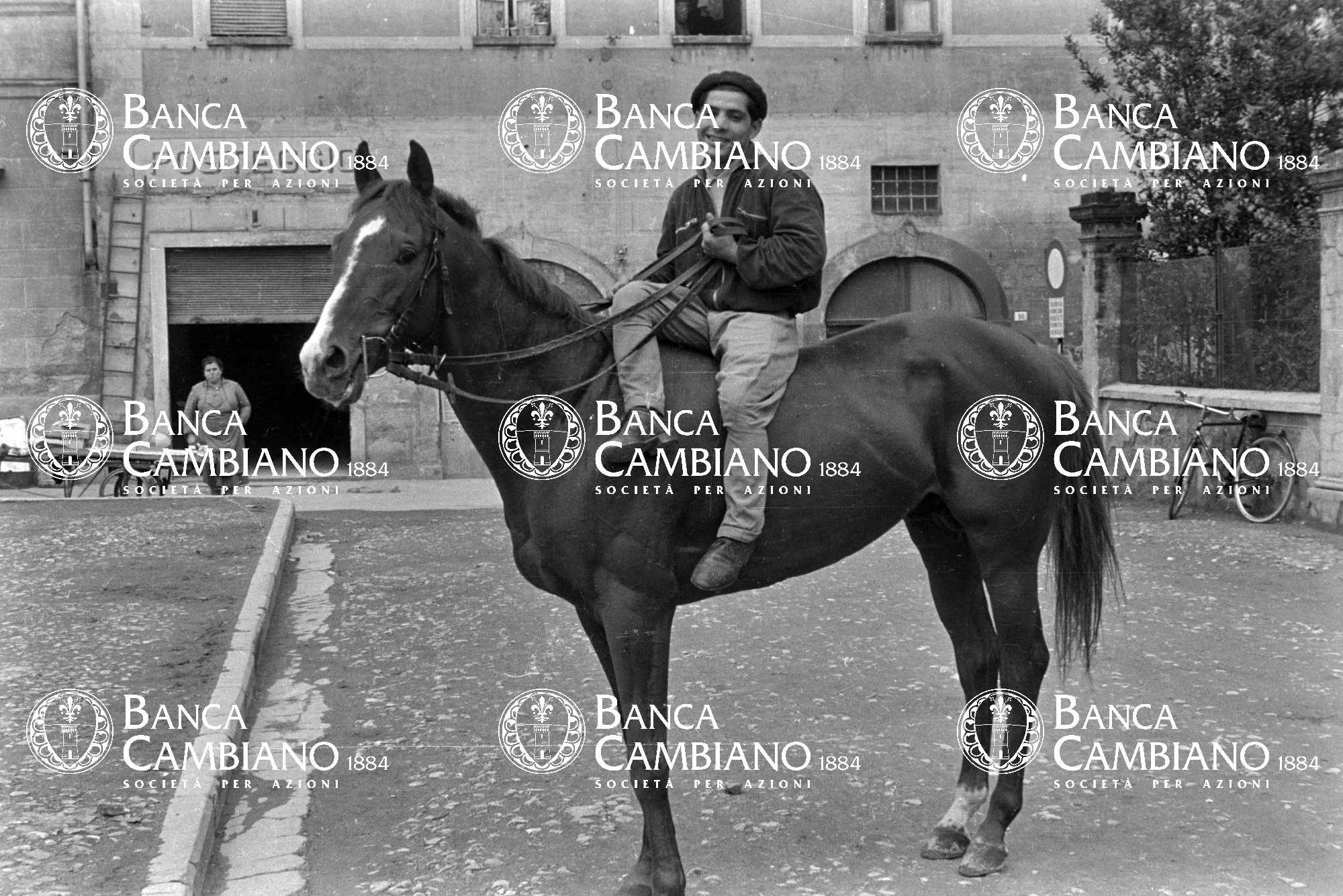 ritratto di uomo a cavallo in piazza Marconi oggi piazza Kennedy