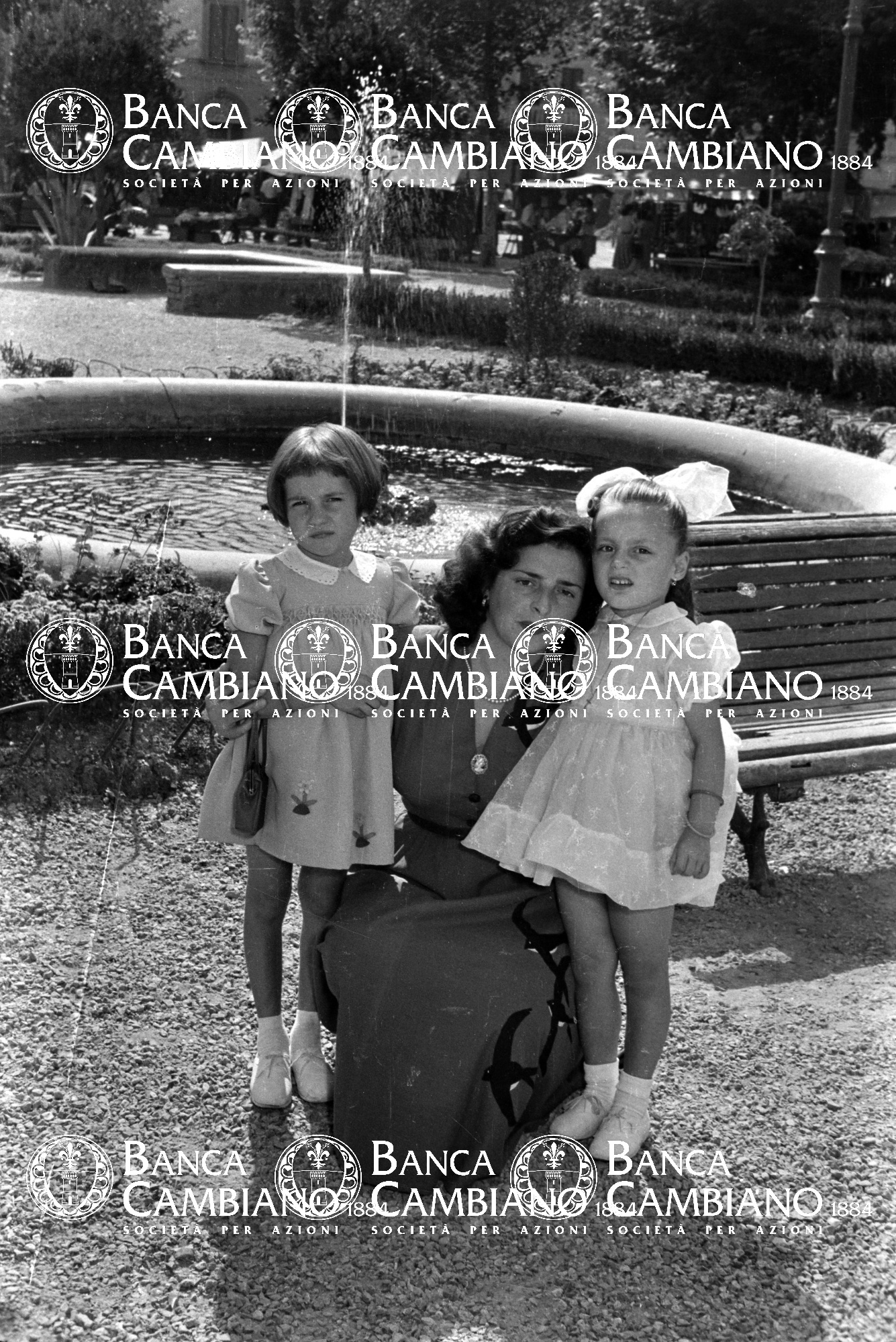 ritratto di donna con bambine in piazza Gramsci