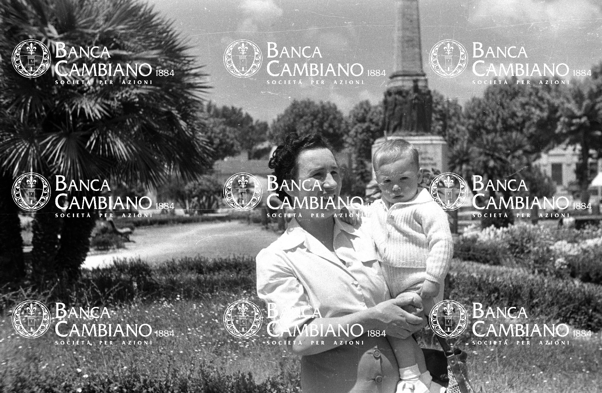 ritratto di donna con bambino in piazza Gramsci