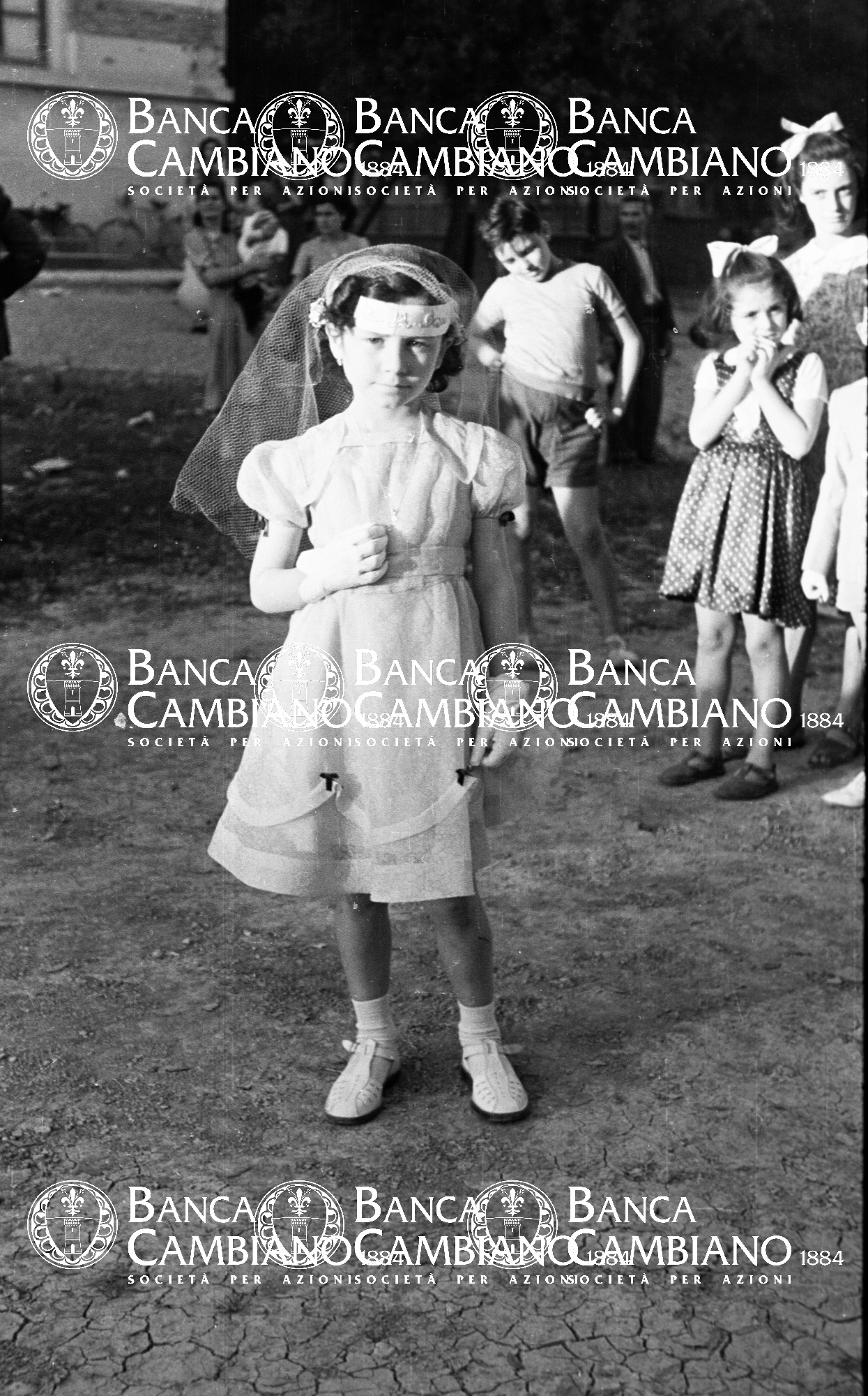 Cresime: ritratto di bambina nei giardini pubblici vicino alla scuola elementare M.Tilli