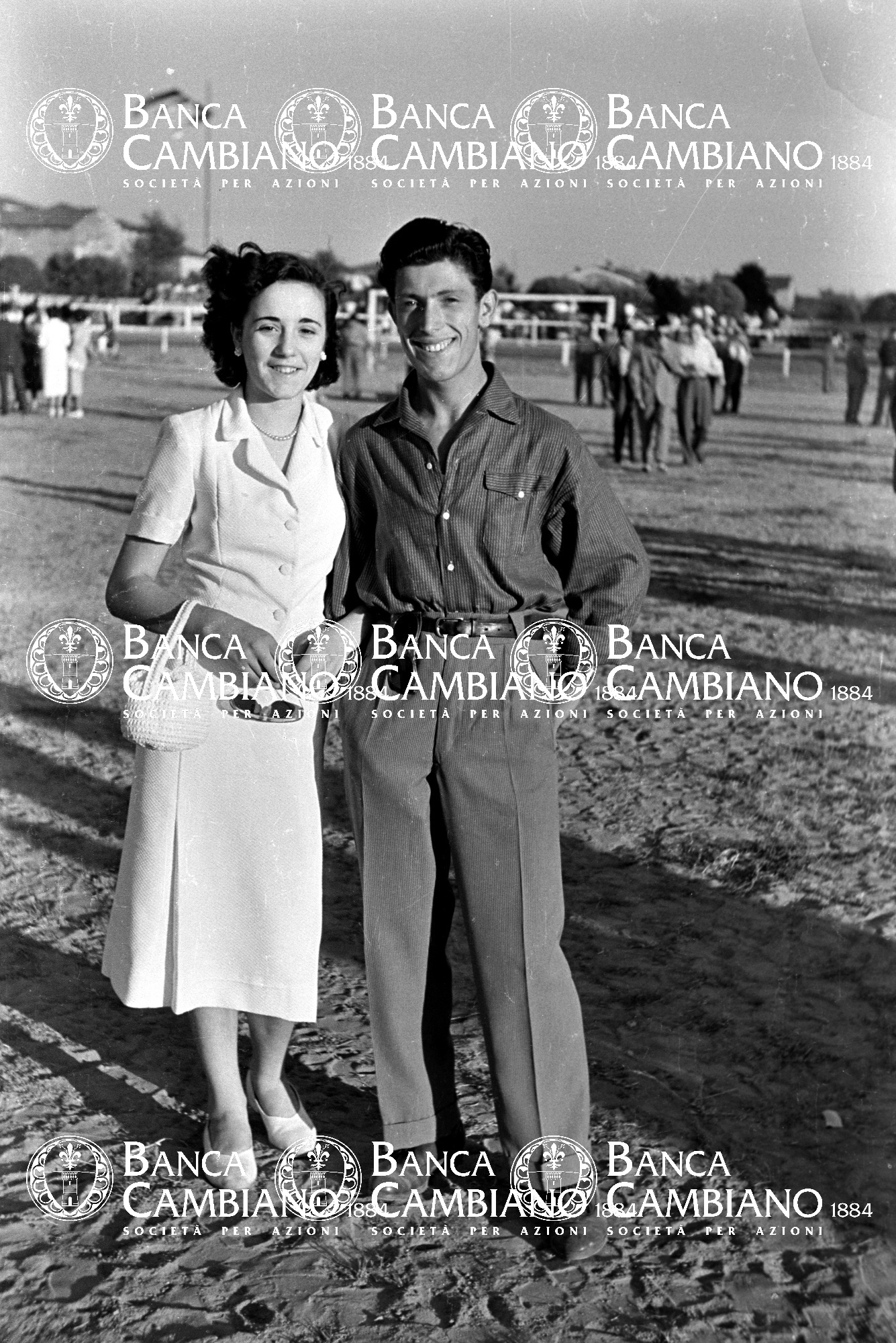 - corsa cavalli al campo sportivo: ritratto di donna e uomo