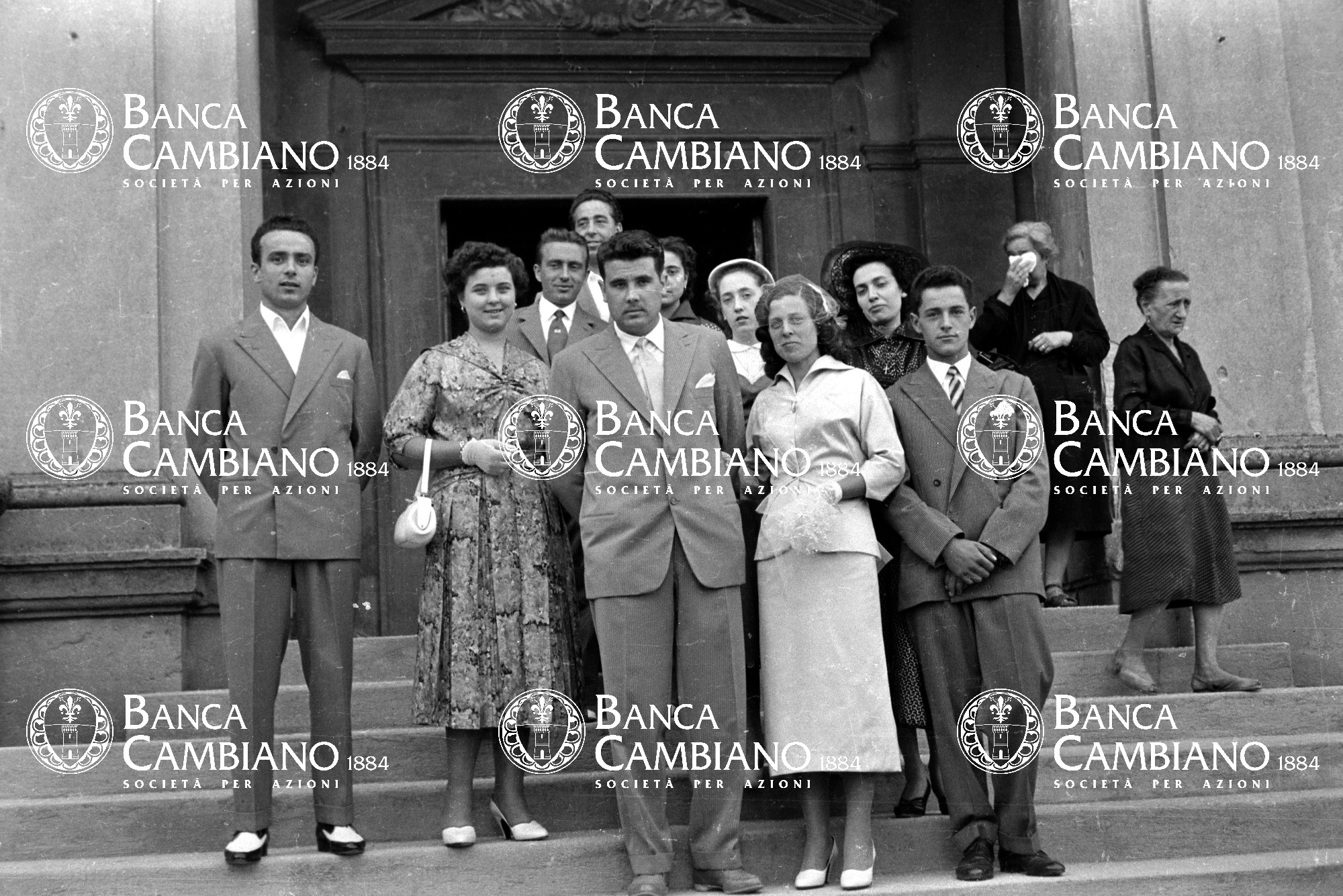 sposi, chiese, moda, matrimonio, donna, anni 50, uomo, gruppi