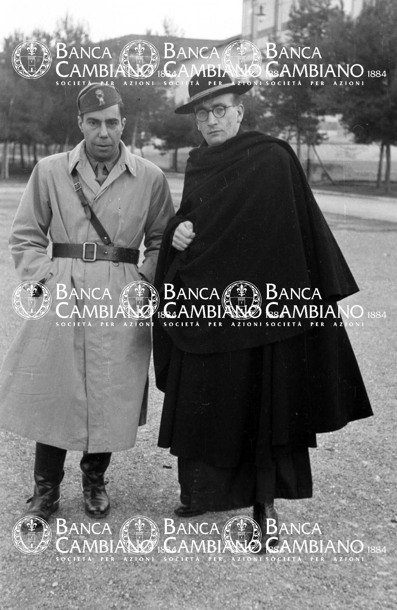 Cappellano Luciano (prete Dogana) con medico militare davanti alla chiesa di S. Verdiana