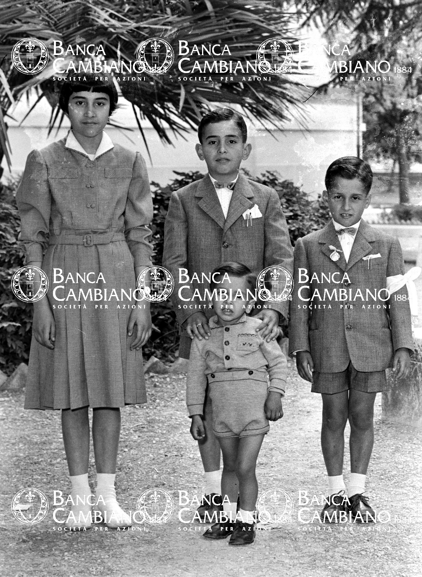 - comunioni: ritratto di bambini nei giardini pubblici vicino alla scuola elementare M.Tilli