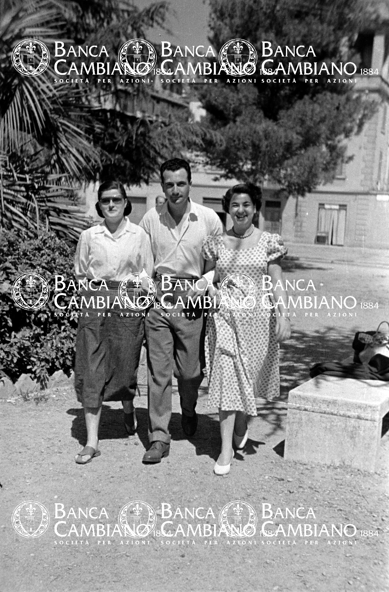 Ritratto di donne e uomo nei giardini pubblici vicino alla scuola elementare M.Tilli