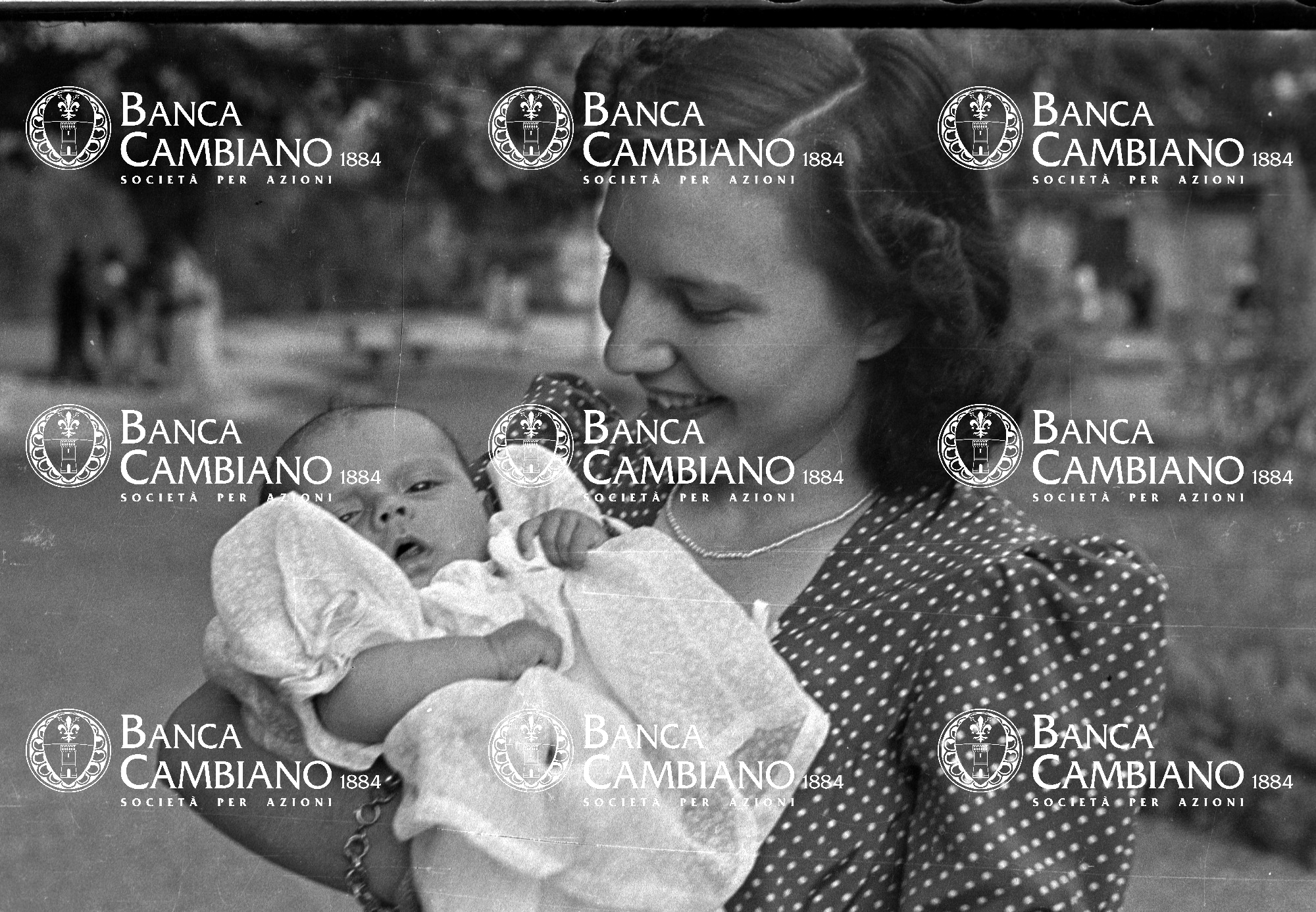 ritratto di donna con neonato ai giardini pubblici in piazza Gramsci giĆ  piazza marconi