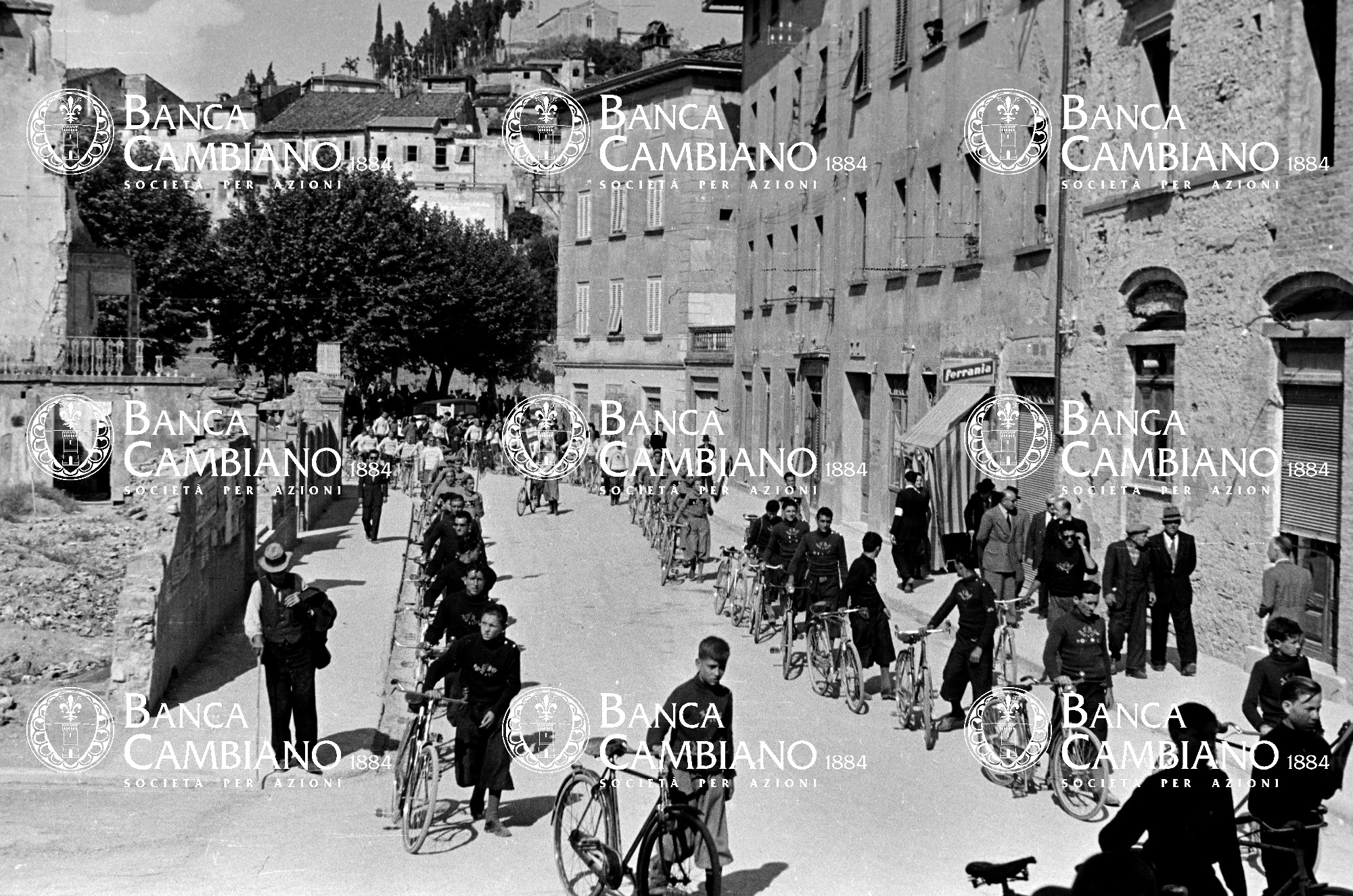 corteo, anni 40, bicicletta, orchestra, donna, uomo