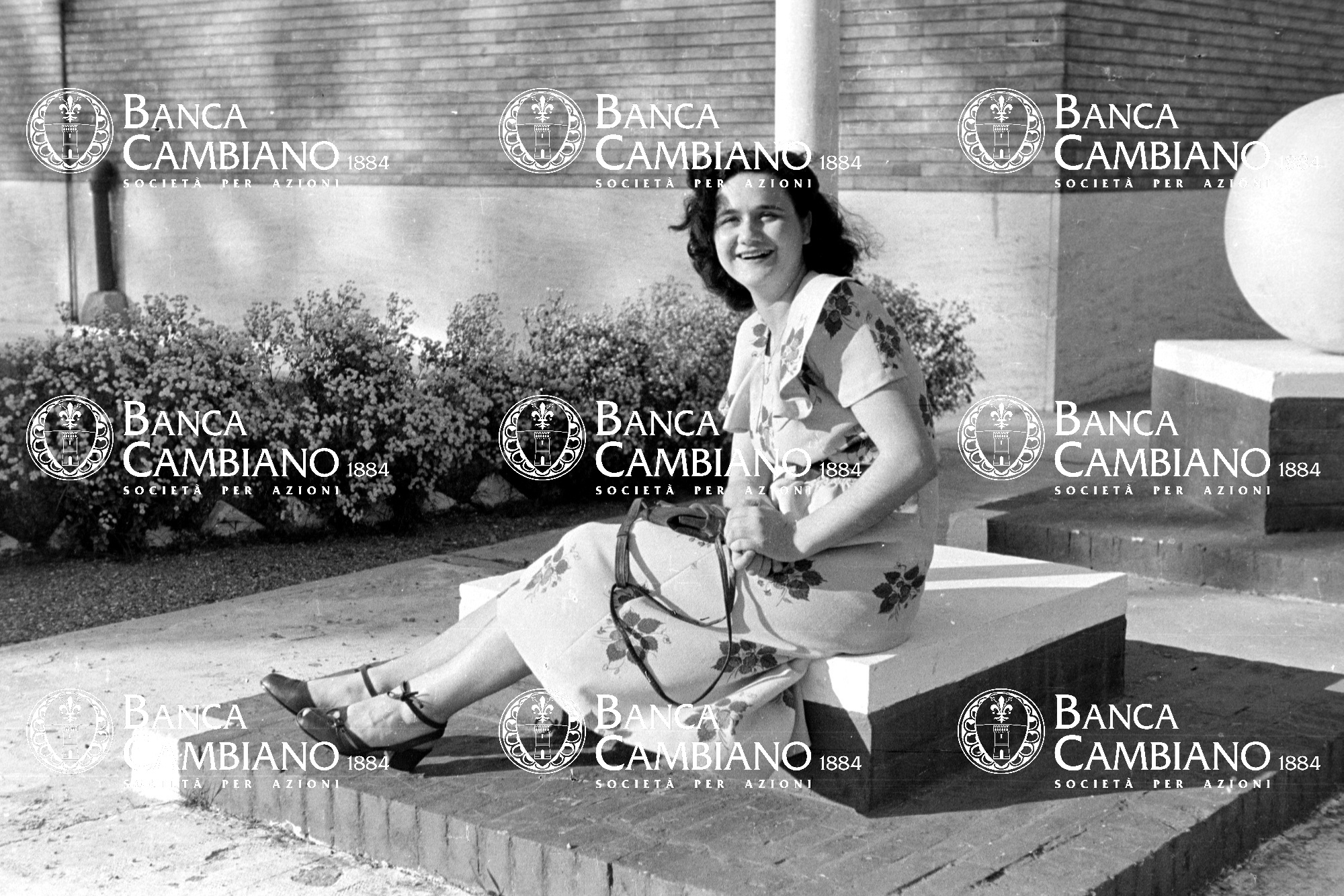 - Ritratto di donna vicino all'edificio del cimitero americano