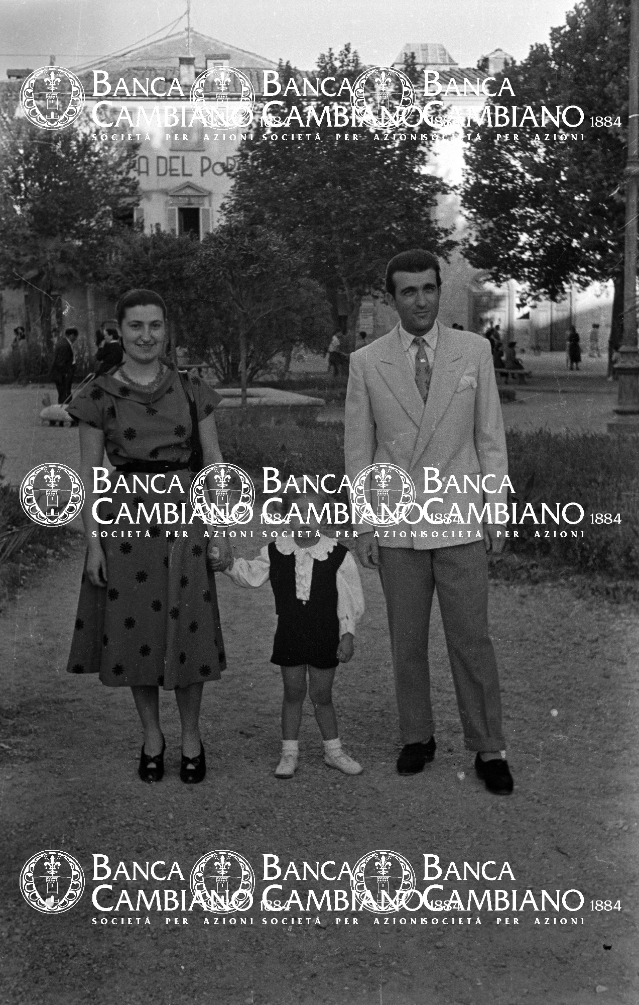ritratto di uomo e donna con bambina in piazza Gramsci