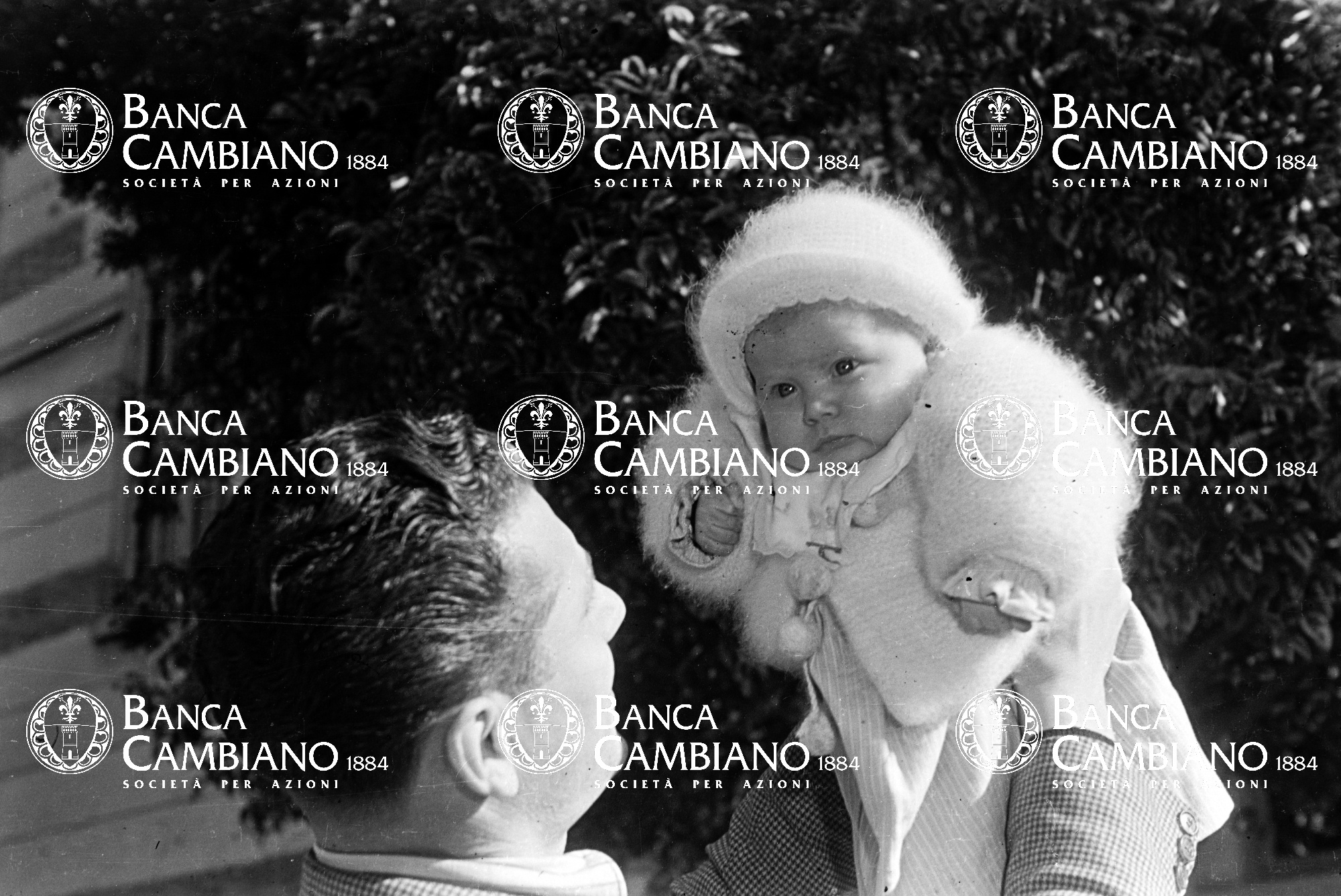 ritratto di uomo con neonato nei giardini pubblici vicino alla scuola tilli