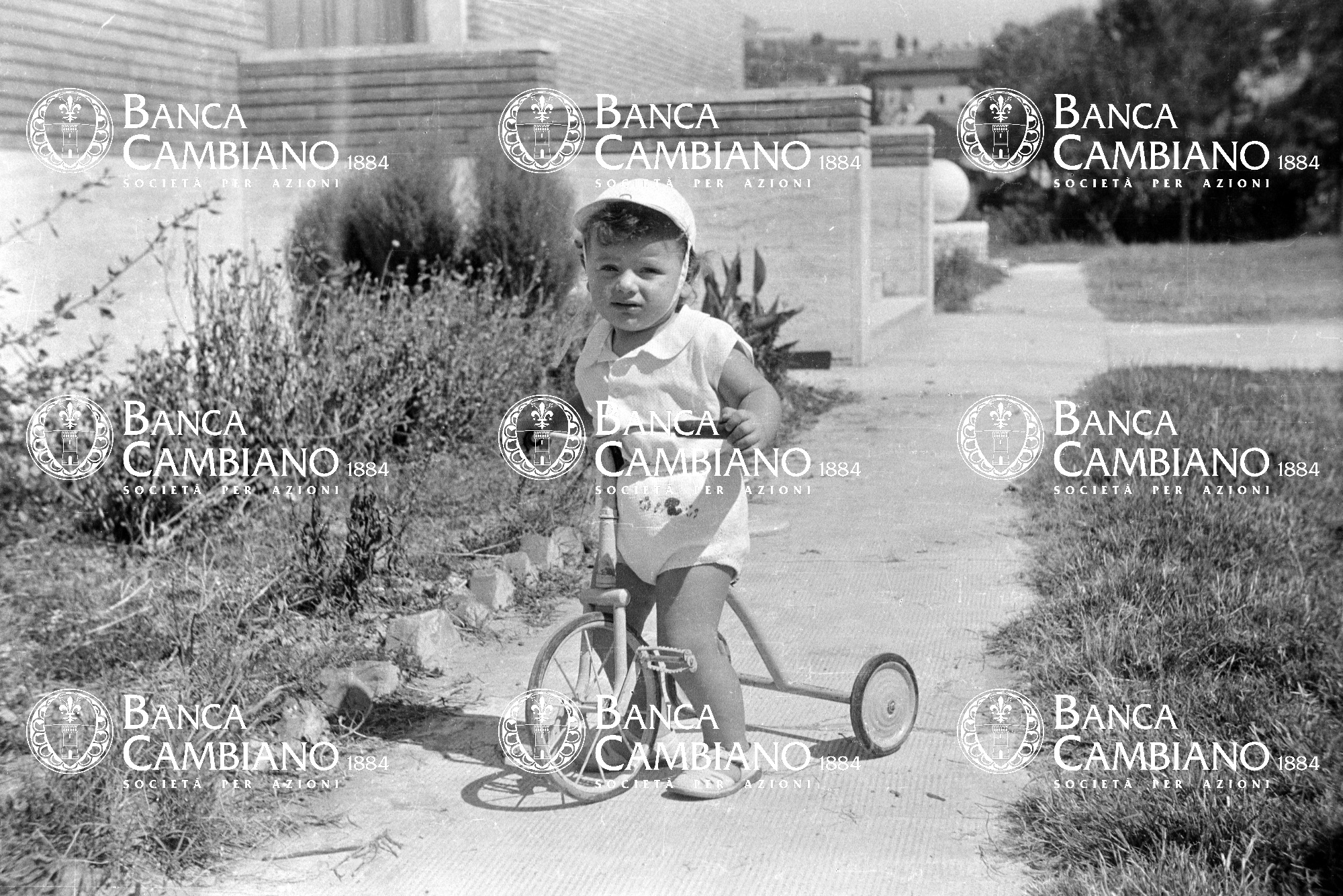 bambina, triciclo, moda, scuola, anni 50, edificio