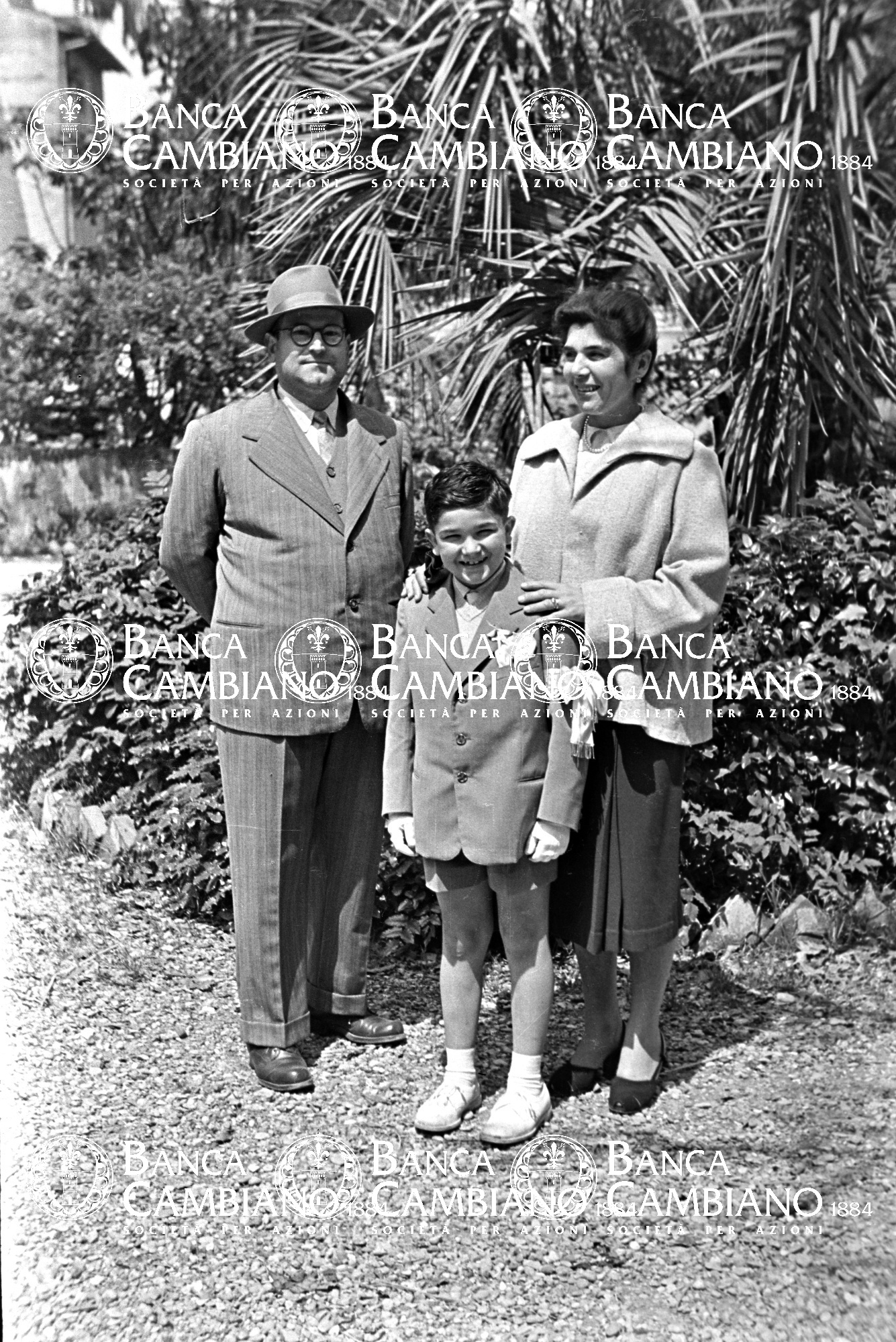 - Cresime: ritratto di uomo e donna con bambino nei giardini pubblici vicino alla scuola elementare M.Tilli