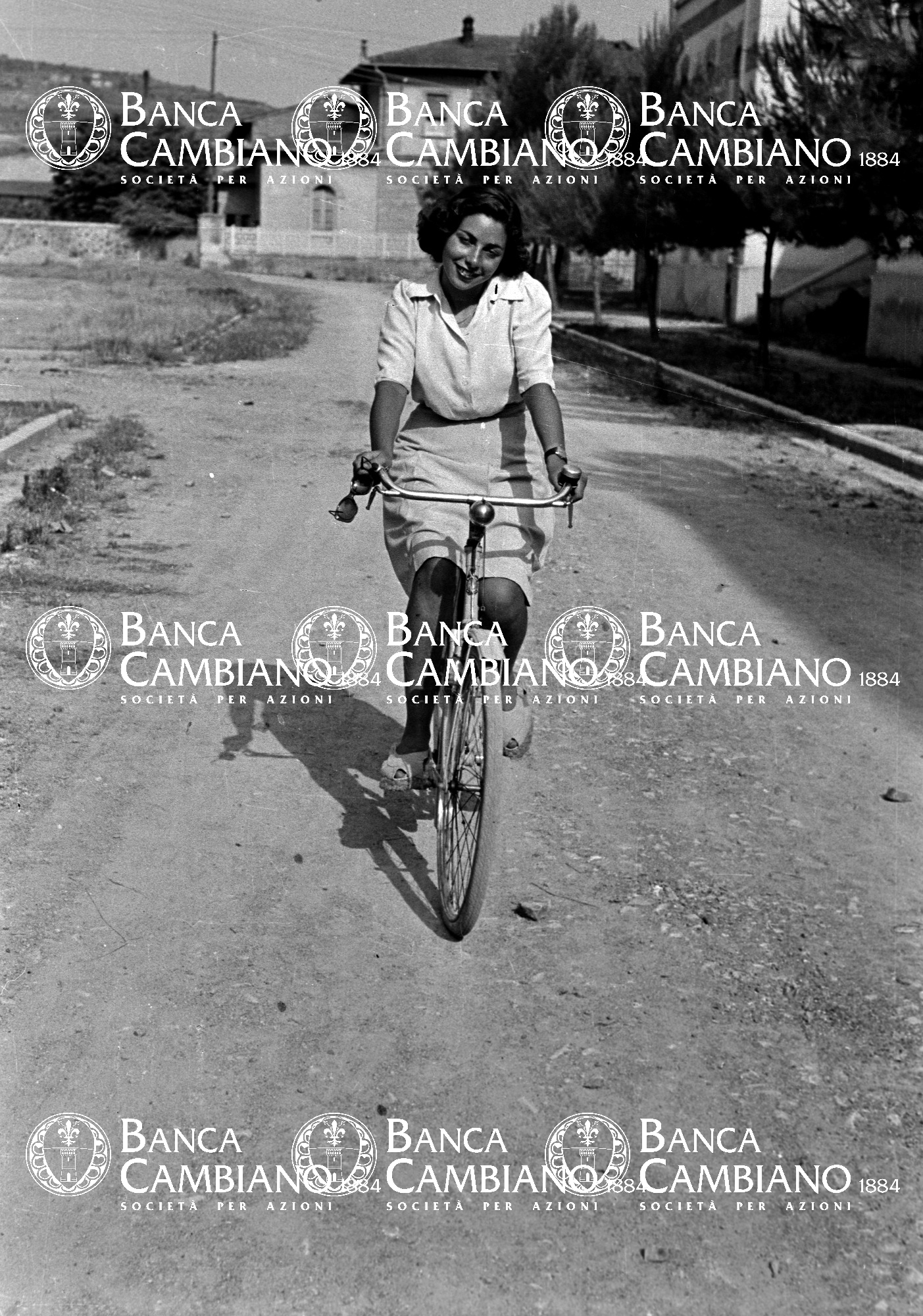 - ritratto di ragazza con bicicletta ai giardini pubblici vicino alla scuola elementare M. Tilli