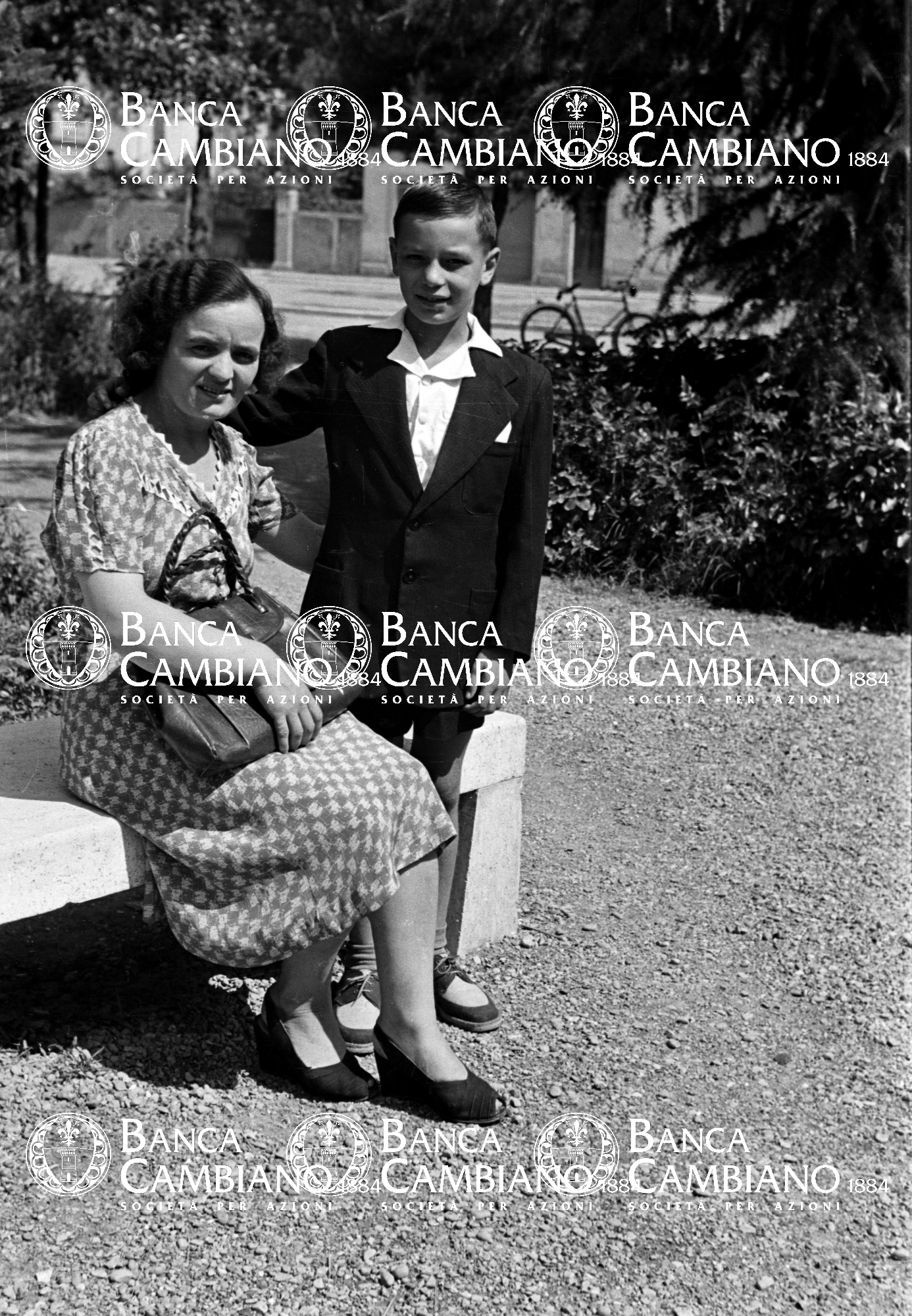 - ritratto di donna con bambino ai giardini pubblici vicino alla scuola elementare M. Tilli