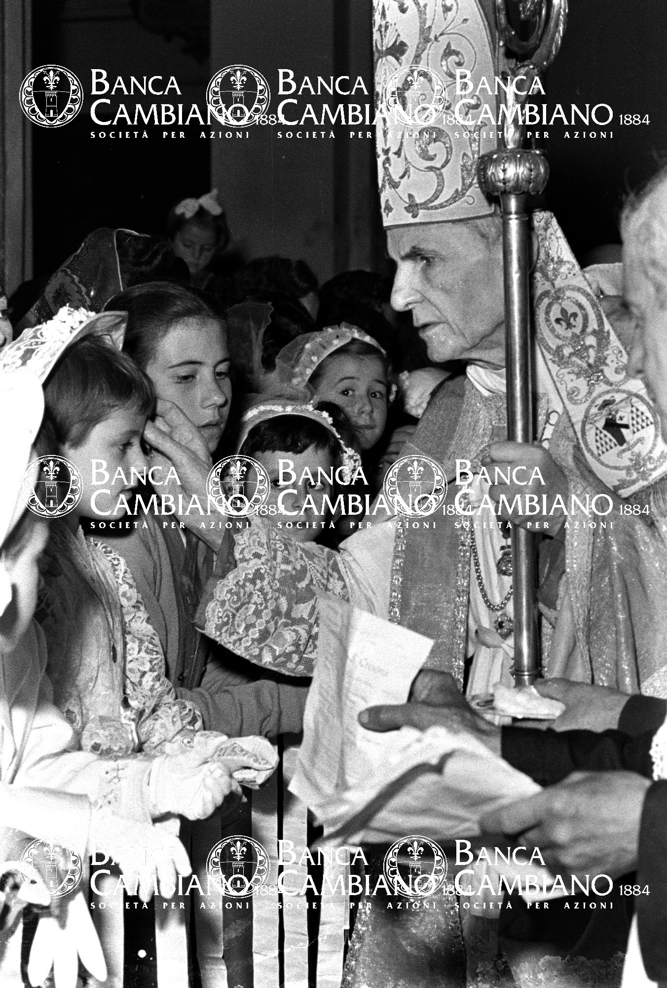 - cresime, bambina, autorità religiosa, vescovo, anni 50